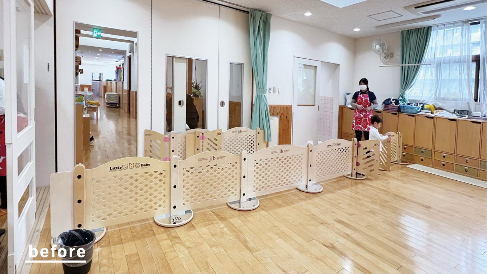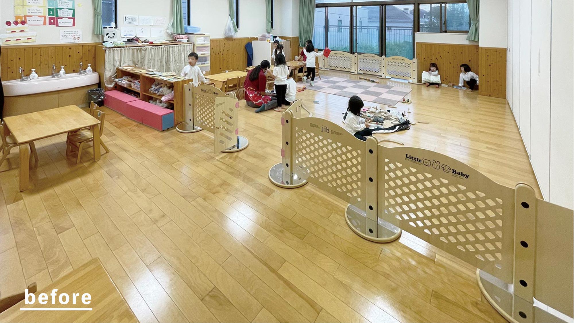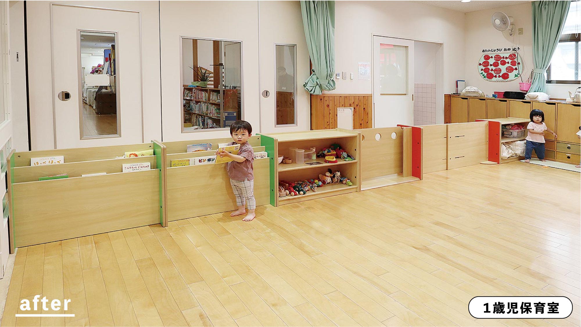 1 歳児室のパーティションが好評頂き、2 歳児室もリニューアルしました。