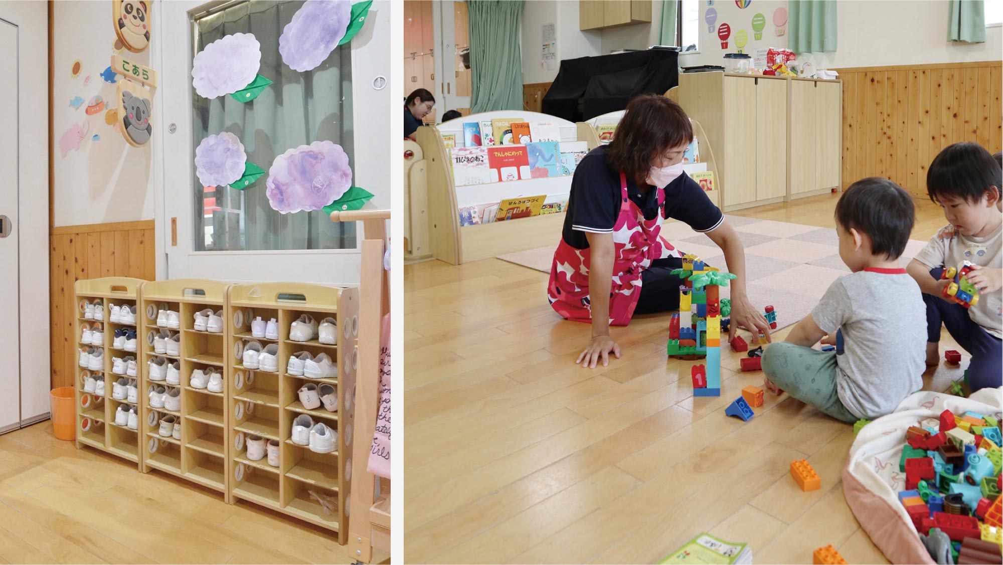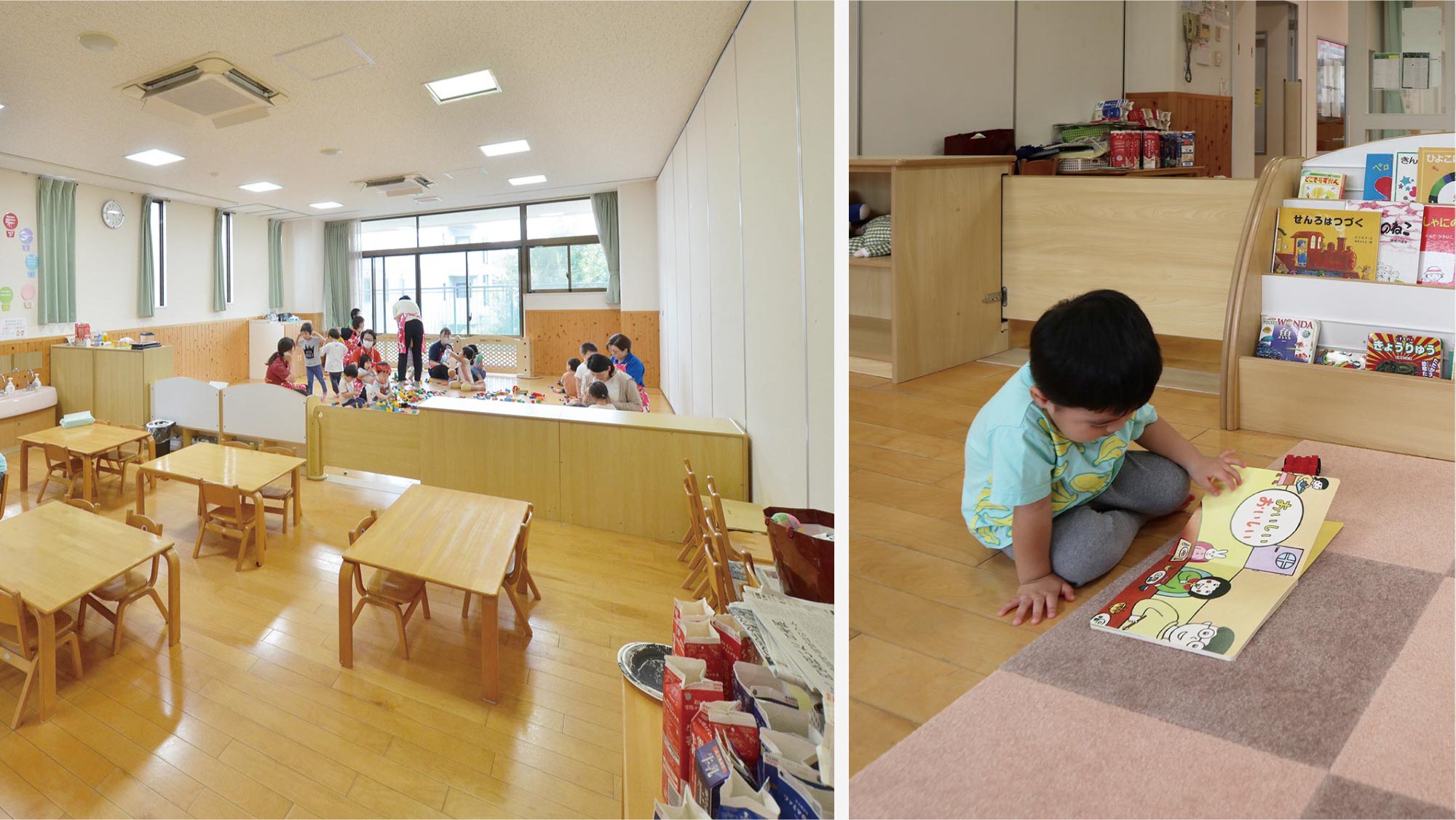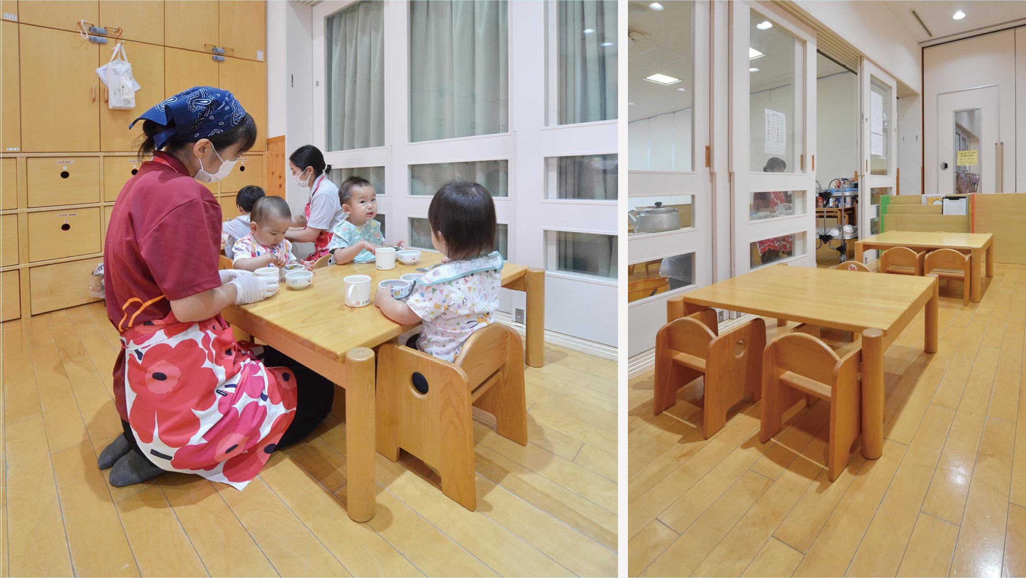 1 歳児室のパーティションが好評頂き、2 歳児室もリニューアルしました。
