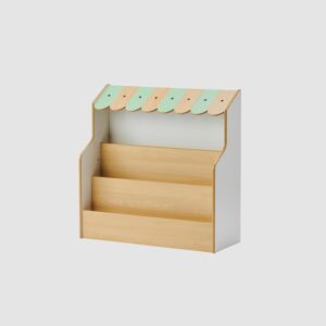 保育室や、エントランス、廊下など、スペースに合わせて展開できるえほんマルシェシリーズ。かわいらしい屋根が楽しい雰囲気を演出します。さまざまなタイプの絵本棚を自由に組み合わせて園にぴったりのスペースをつくりましょう。