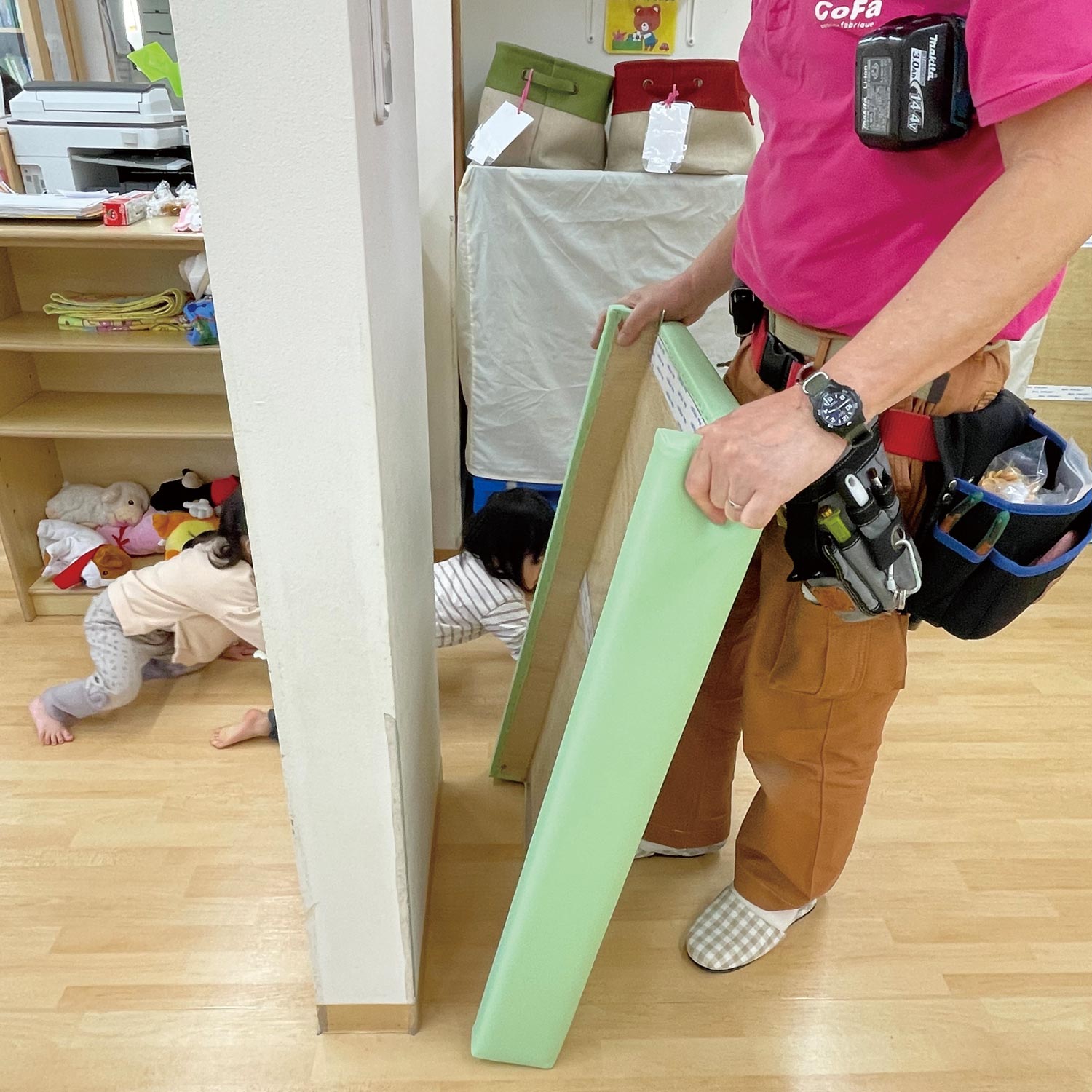 ウォールデコパネルは壁の穴や傷を隠したり、柱の角を安全に保護したり、遊びに利用したり、用途に合わせて壁面を手軽にデコレーションできるパネルです。コーナークッション は2つ折りの柔らかいクッションパネル。子どもがぶつかると危ない柱の角に取り付けることで安全を確保できます。