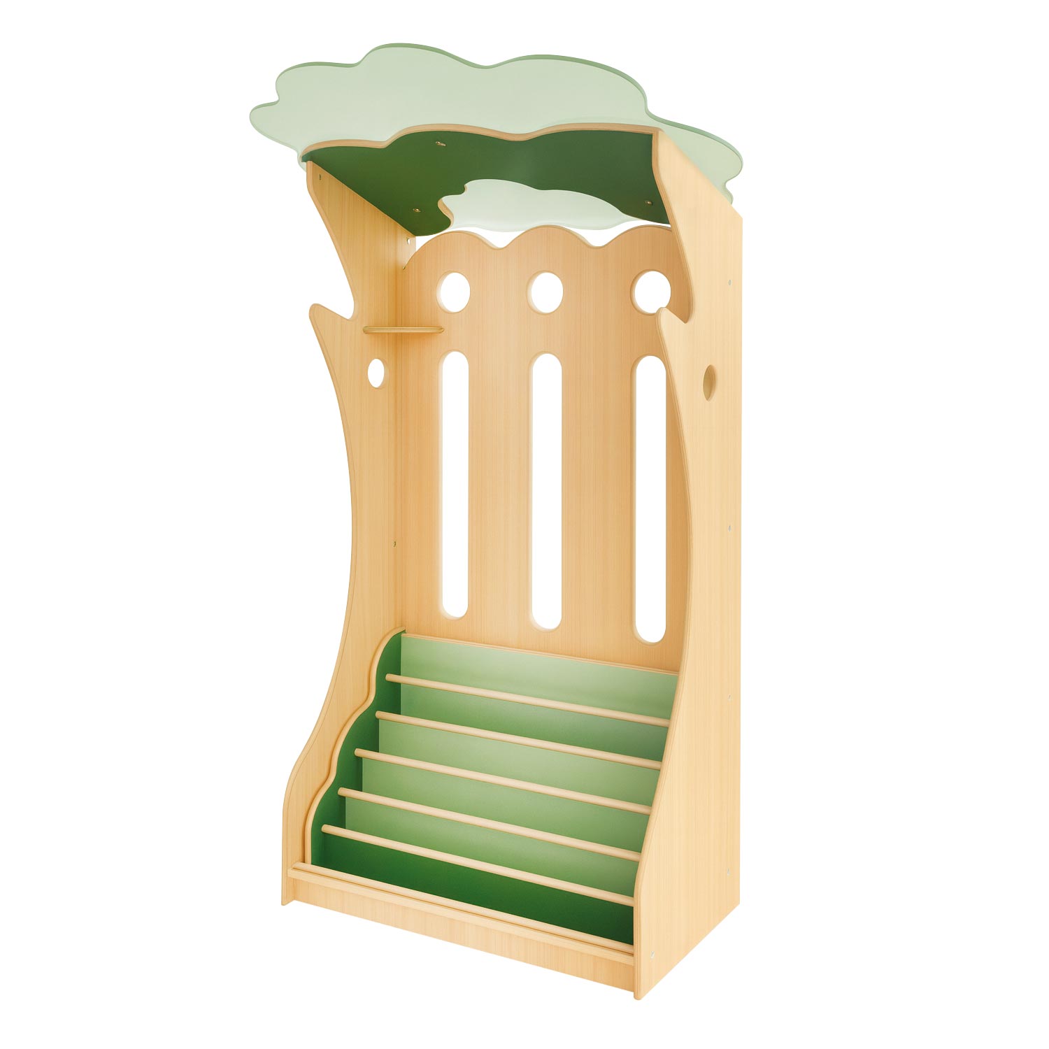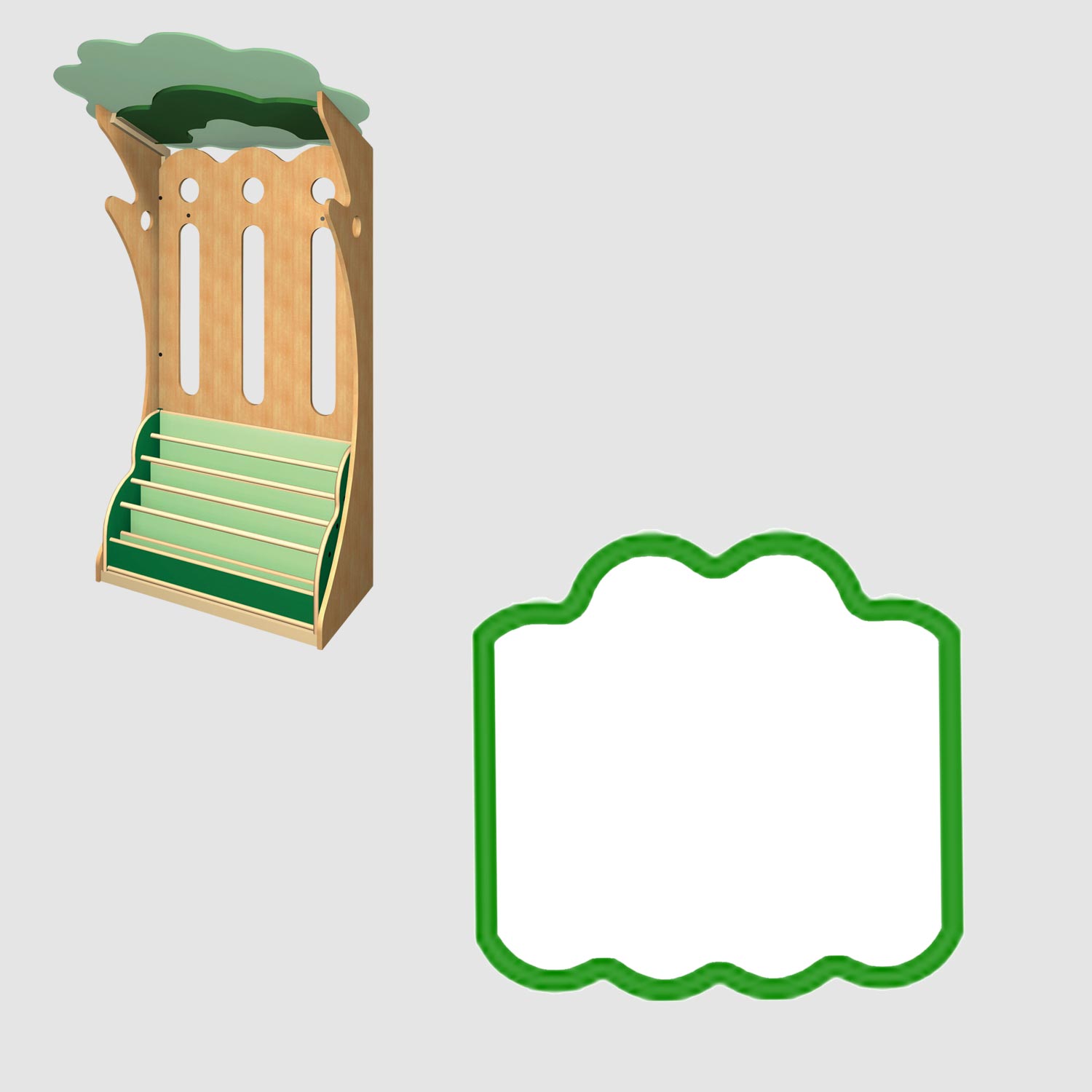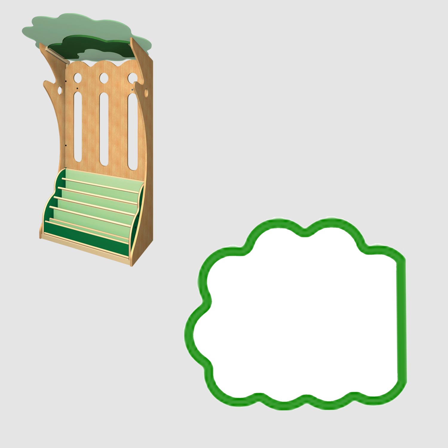 木をモチーフにした存在感のある絵本棚です。連結すると大きな木のかたちになり、印象的なえほんコーナーをつくるのに最適です。