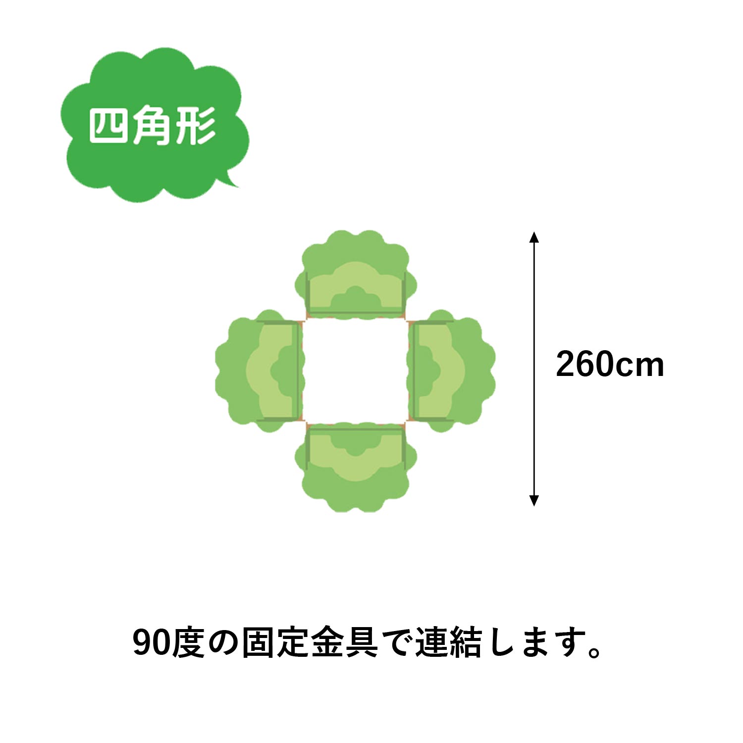 出入口を作るためのブックツリーと、絵本棚が付いたブックツリーフェンスを丸く連結すると、木に囲まれて絵本を読んでいるような空間をつくることができます。廊下などの狭いスペースにも、ブックツリーフェンスを1台設置するだけで雰囲気が変わります。