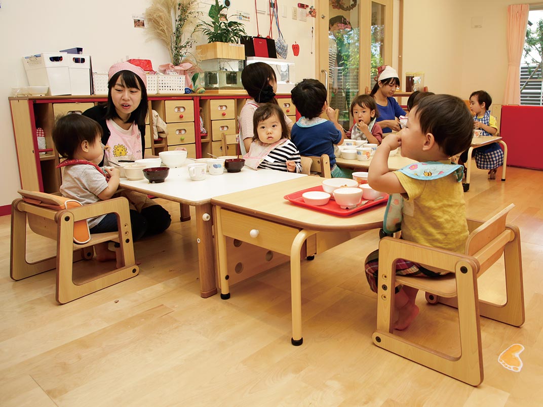 他の子どもの食事に手が届かない適度な距離を保ちます