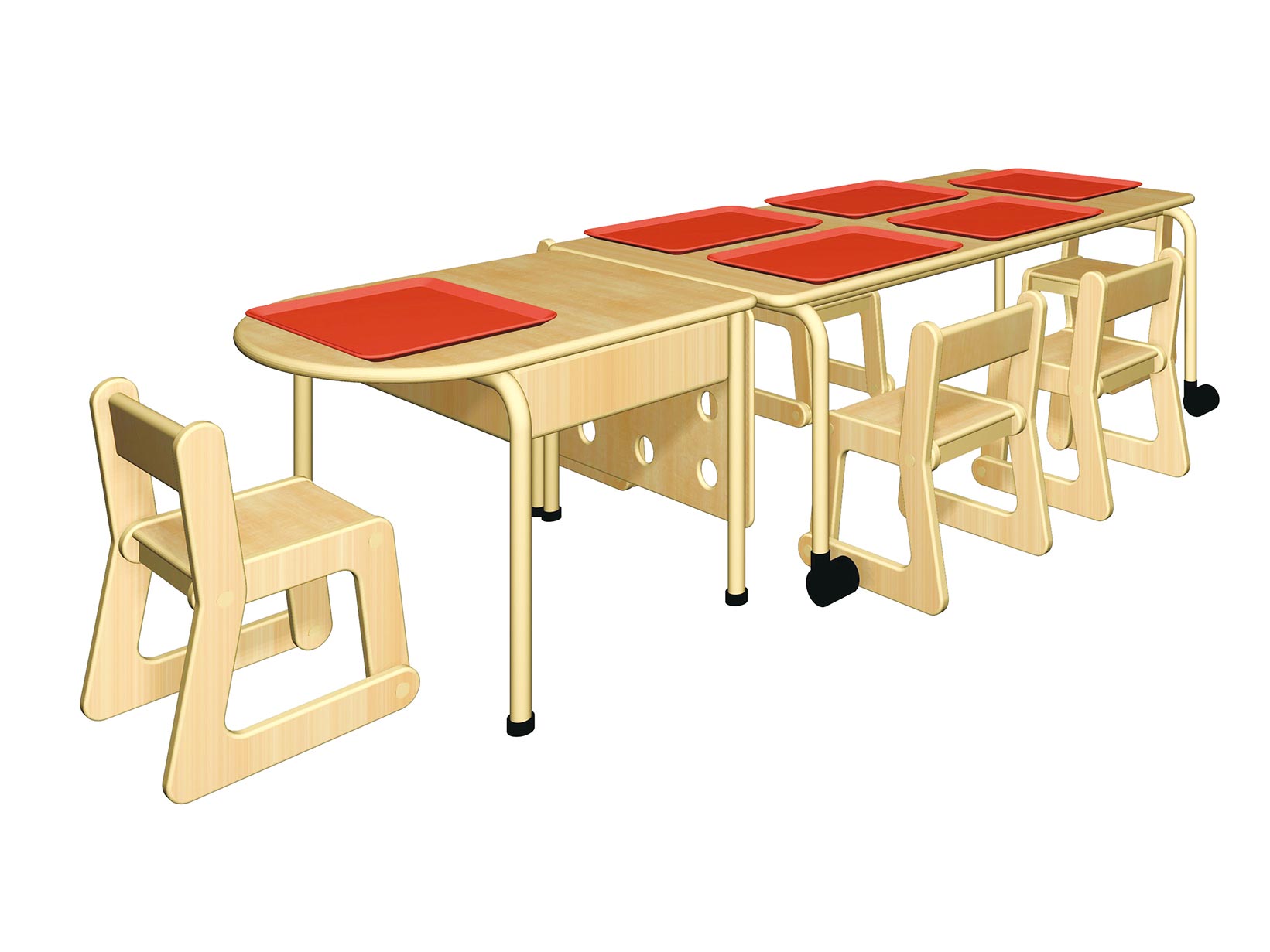 アレルギーを持つ子どもは、普通食を食べることで、アレルギー症状が出てしまう危険性があります。アレルギーランチテーブルは、他の子どもの食事には手が届かない上、疎外感を感じない適度な距離を保つことができます。