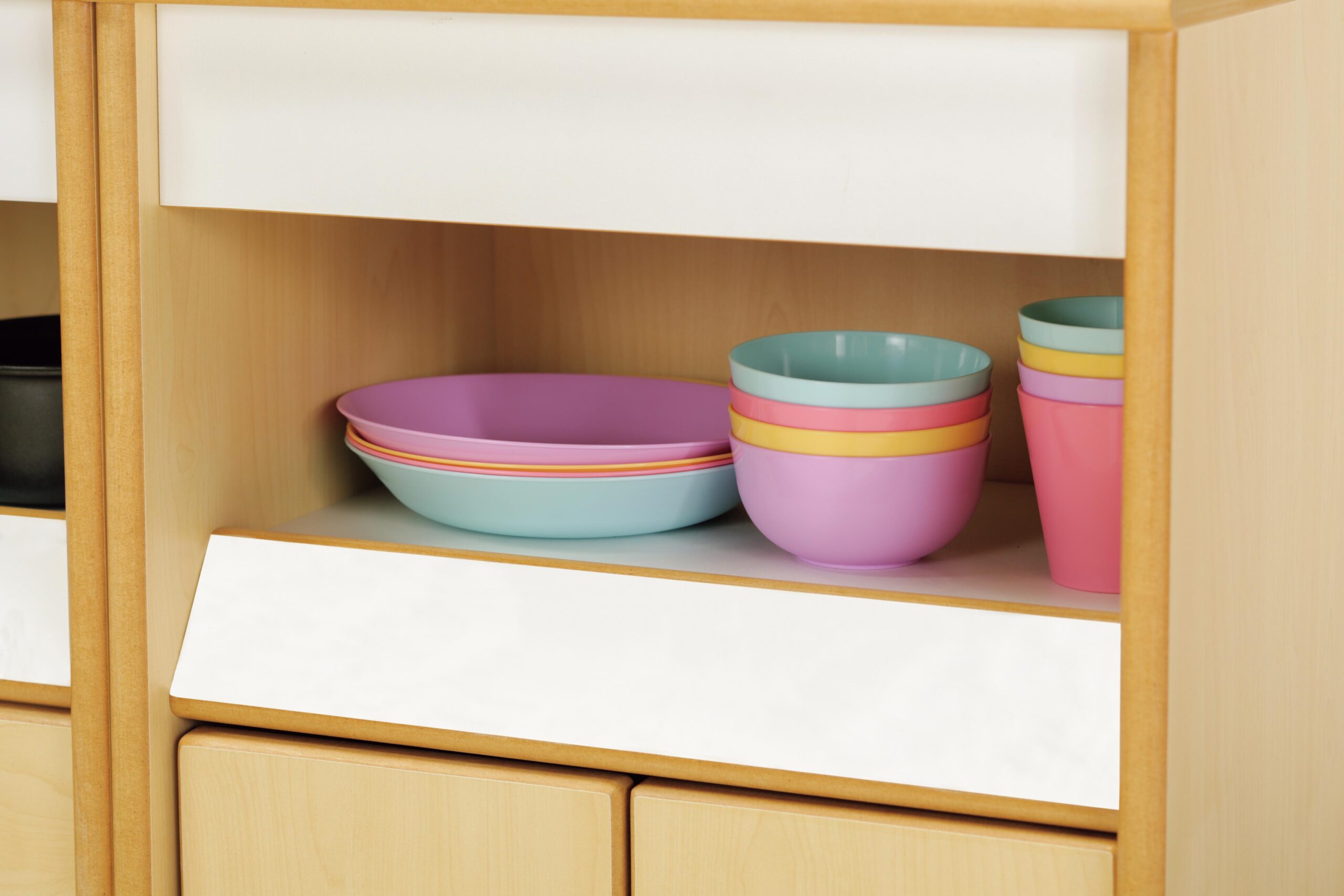 「シンク」「コンロ」「カウンター」の基本製品から成り立つ、名札がついたごっこ遊びシリーズのシンク。本物の蛇口がキッチンを再現しています。乳児用・幼児用の2種類から、子どもに合った高さを選ぶことができます。