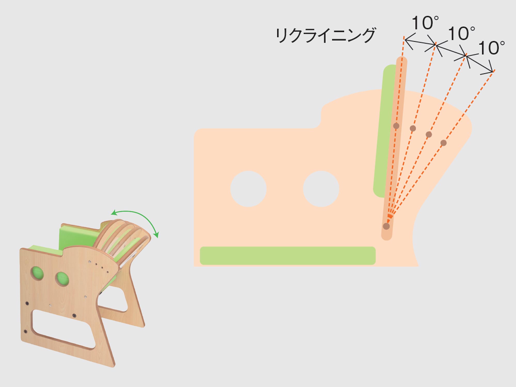 10度ずつ4段階にリクライニングが可能です。子どものからだに合わせてフィットさせることで、姿勢を保つことができます。