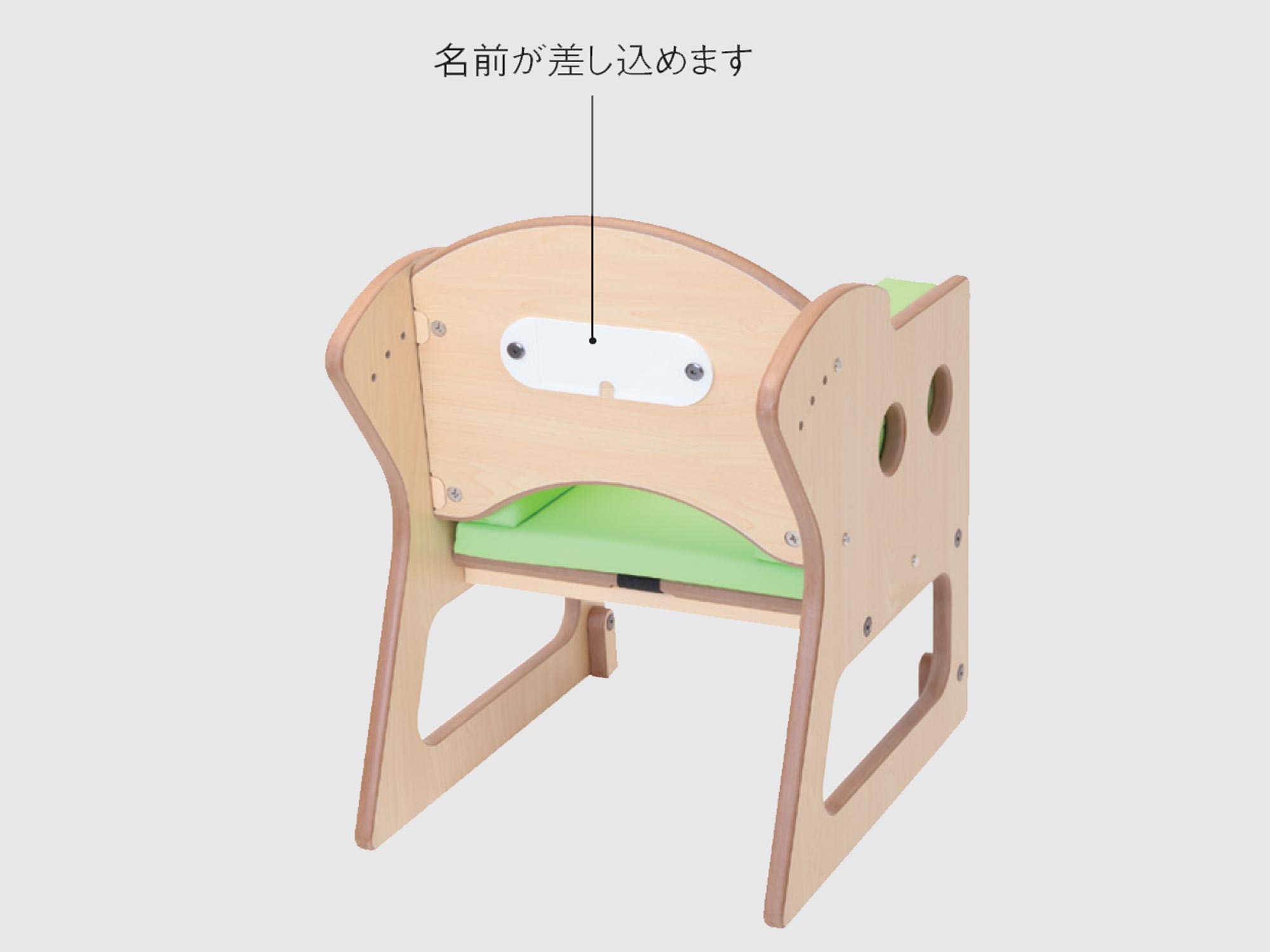 背部分にはネームプレートがあるので、名前やイラストを差し込むことができます。自分のイスがわかる目印になるので便利です。