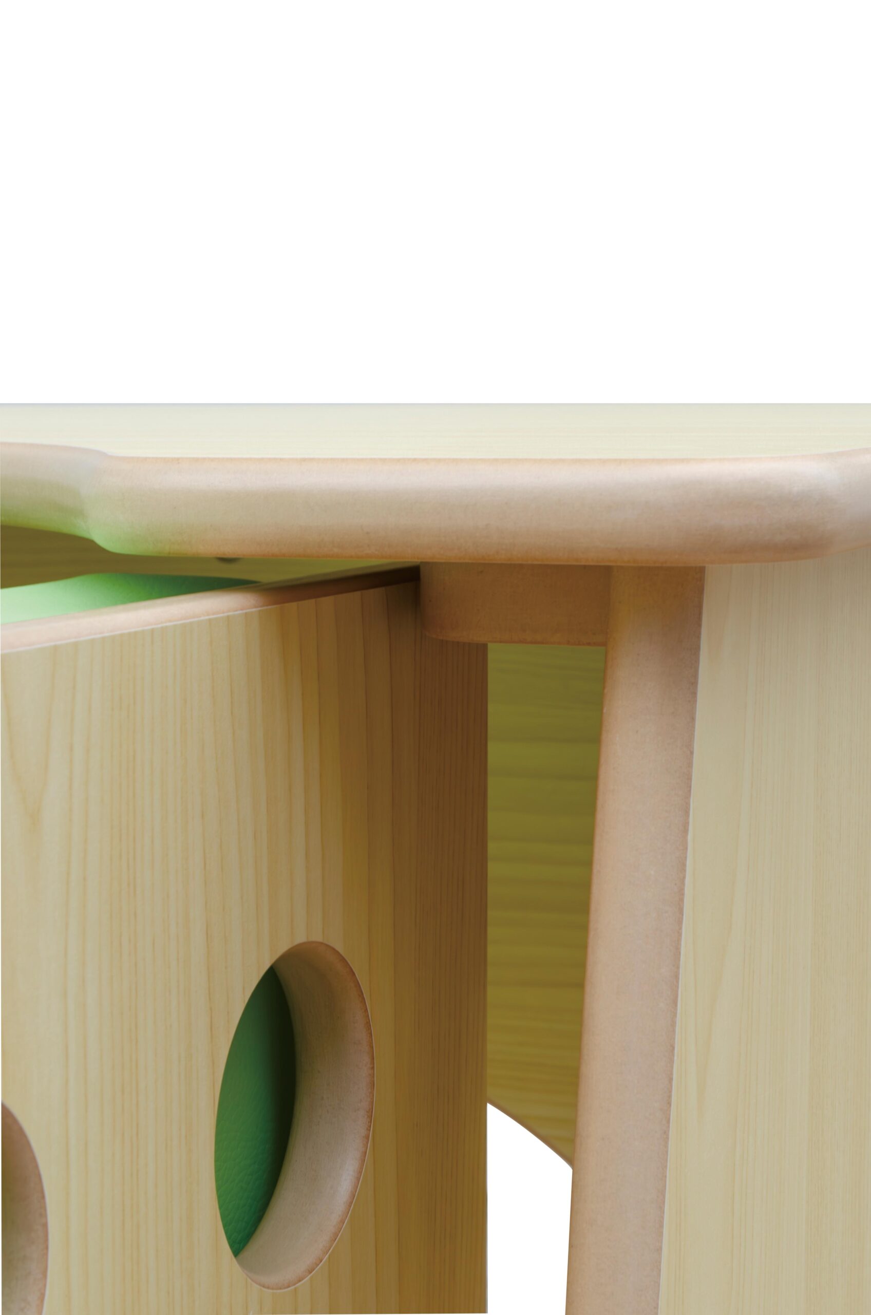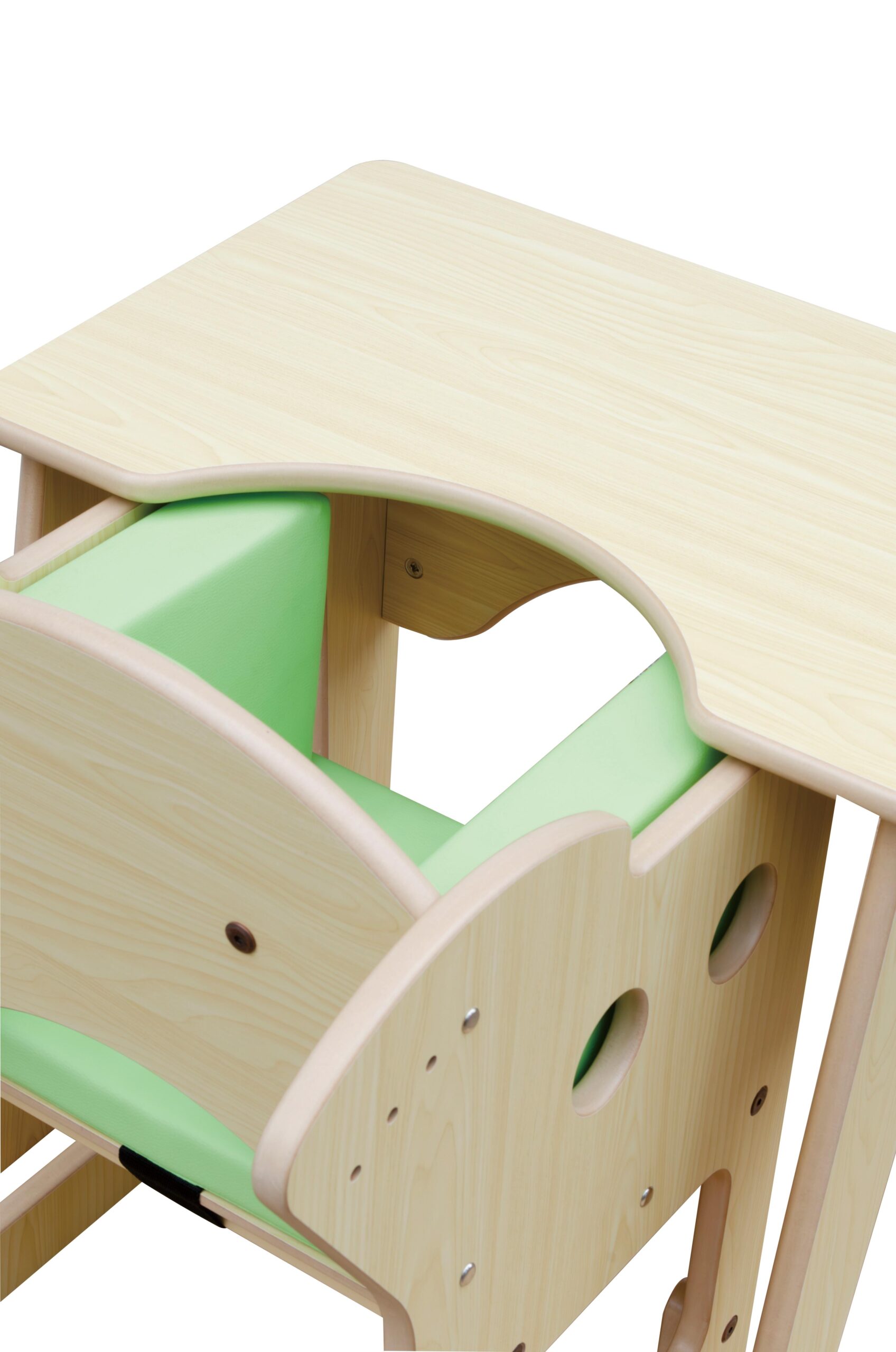 テーブルに「くぼみ」があることで「テーブルの ここに座るんだ」という視覚的理解につなが ります。