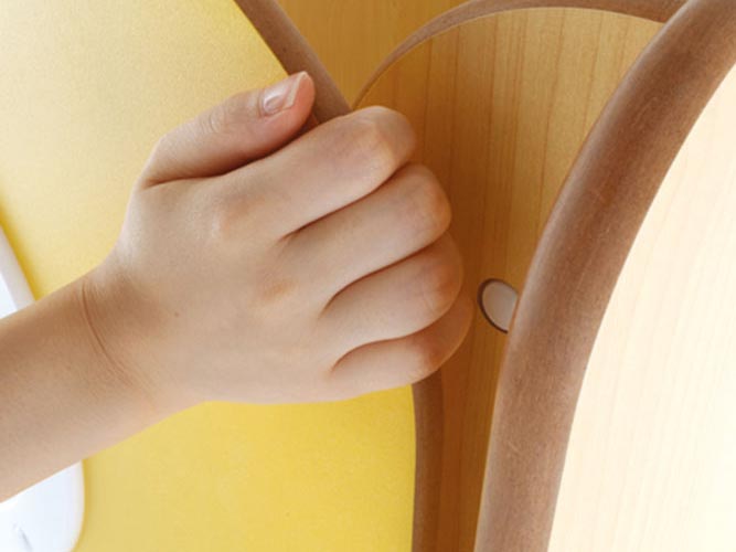 扉と壁板の間に隙間があるため、扉を閉めても指が挟まりません。子どもが怪我をしないので安心です。扉は手を離すと閉まります。