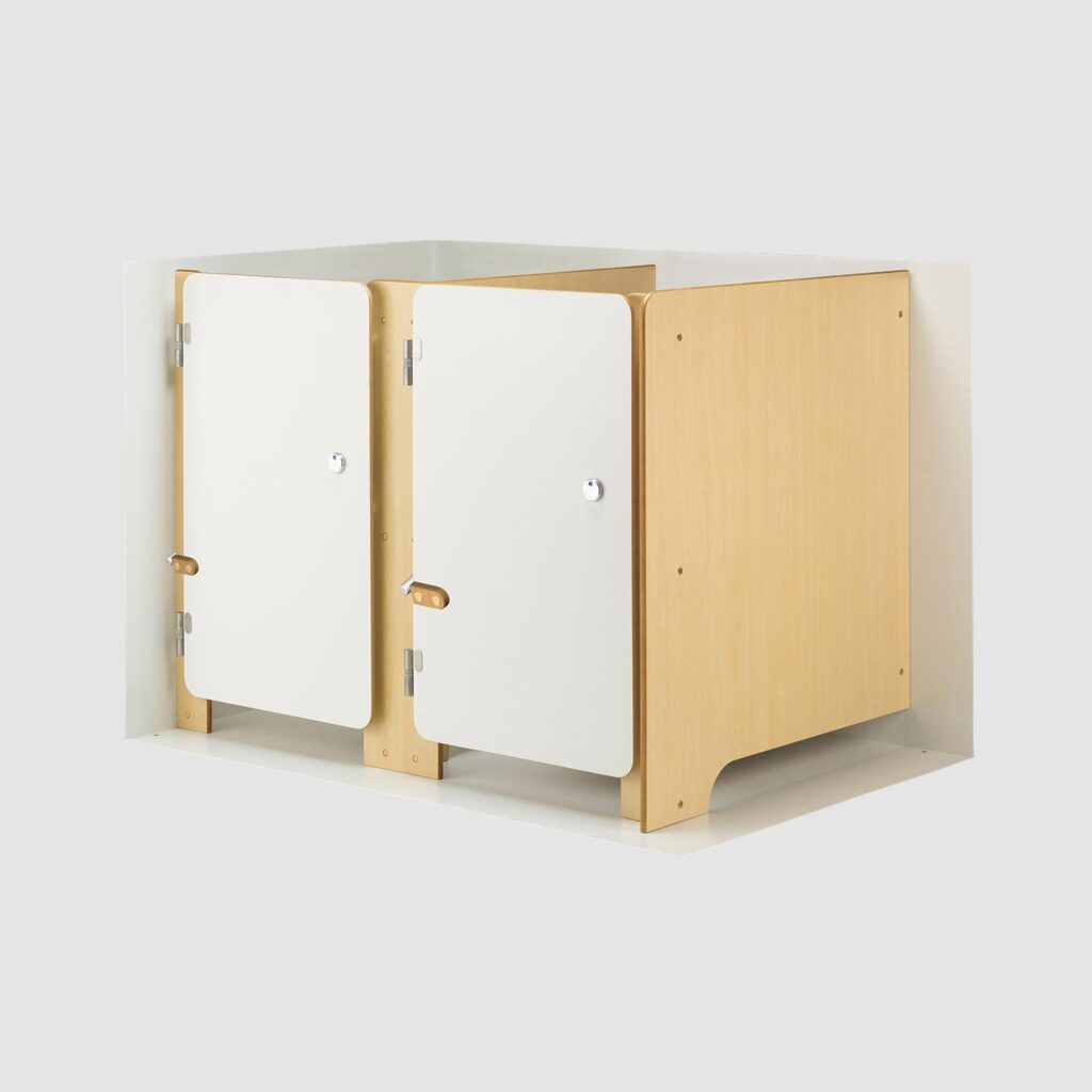 シンプルなデザインのトイレブースです。扉色は2色から選べます。設置場所に合わせた寸法での製作が可能です。詳細はお問い合わせください。