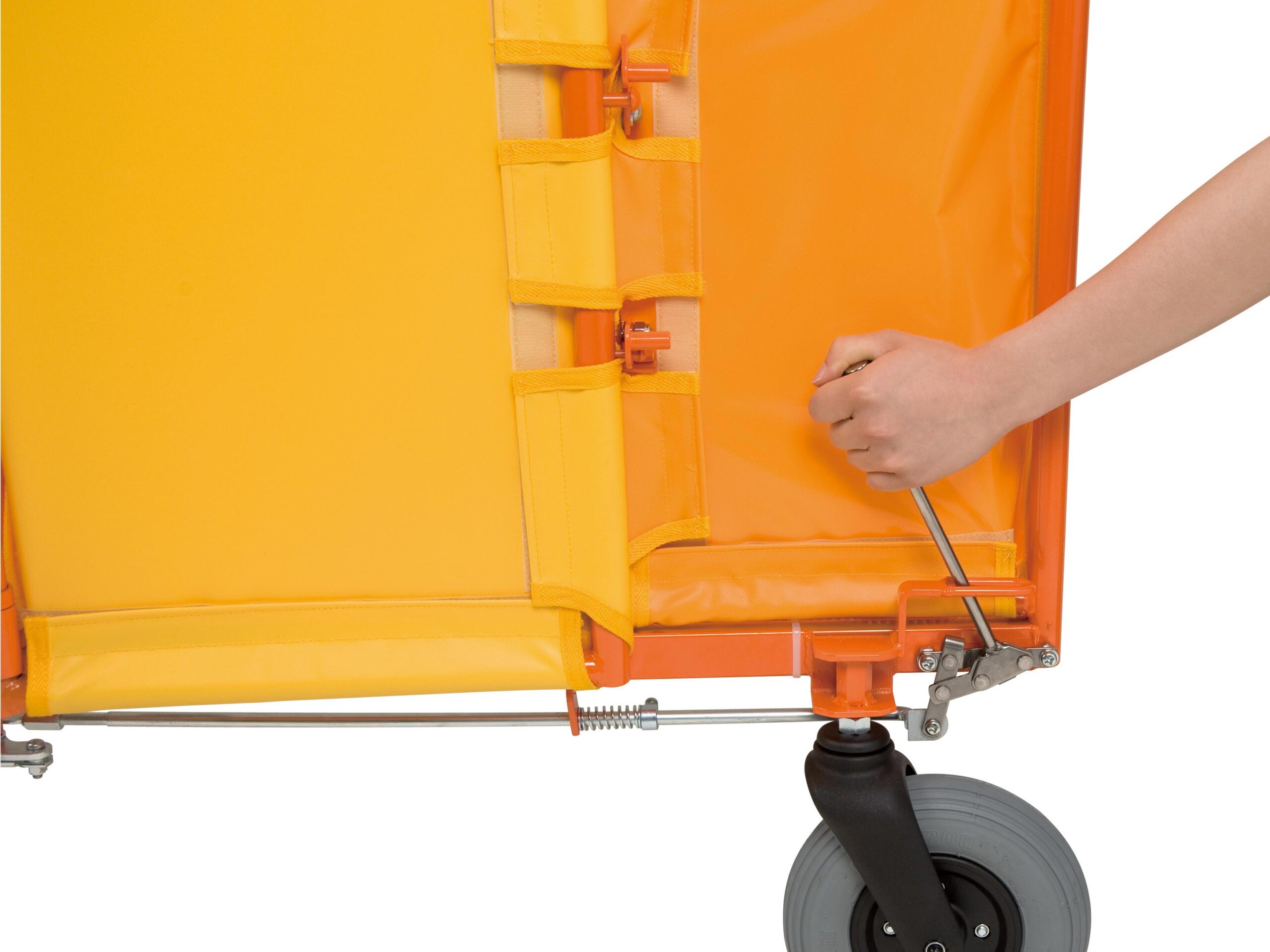 災害の際、複数の子どもを移動させることができる避難車。散歩カートして乳児の戸外活動の際に使うこともできます。タイヤはノーパンクタイヤを採用しています。