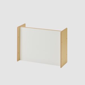 全てのユニットを高さ65㎝に揃えてあるため、パーティションとなる絵本棚や整理棚を隙間なく連結することができます。連結する際はボルトナットを使います。