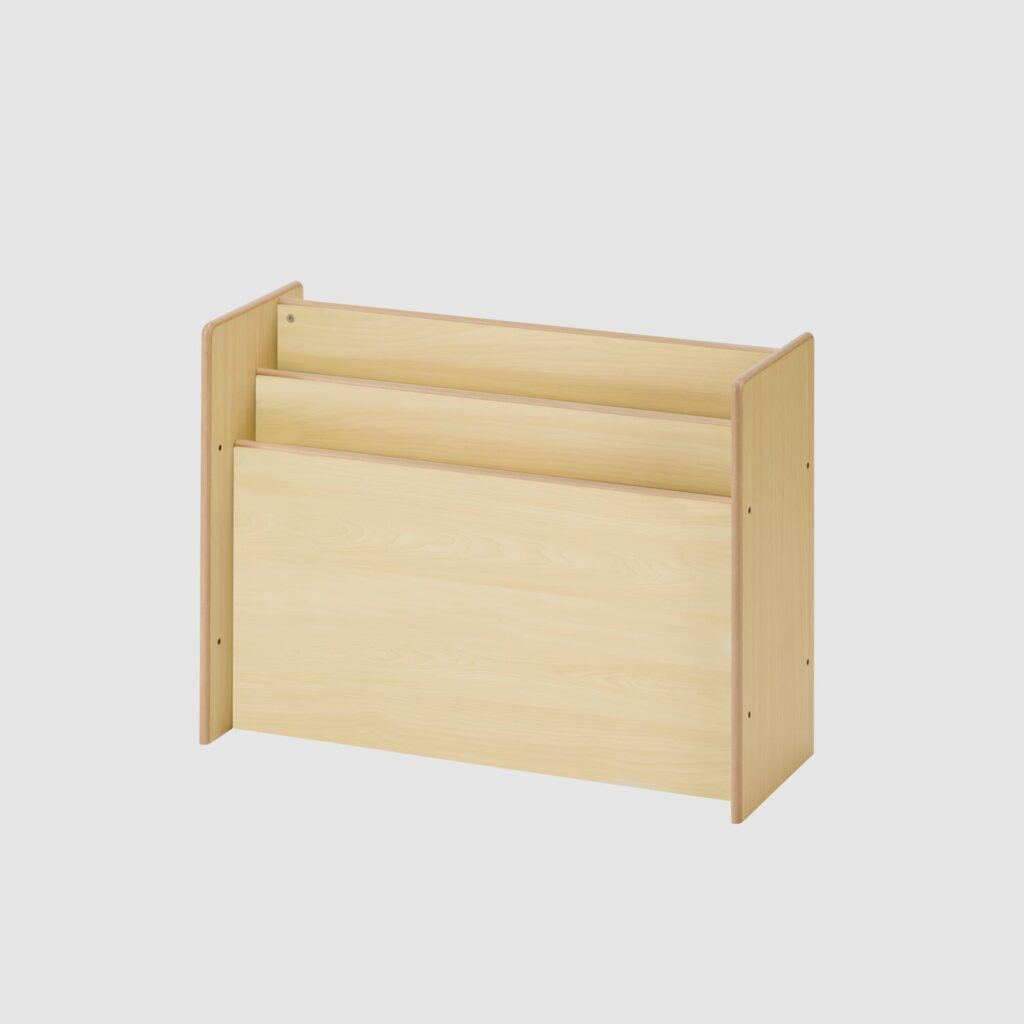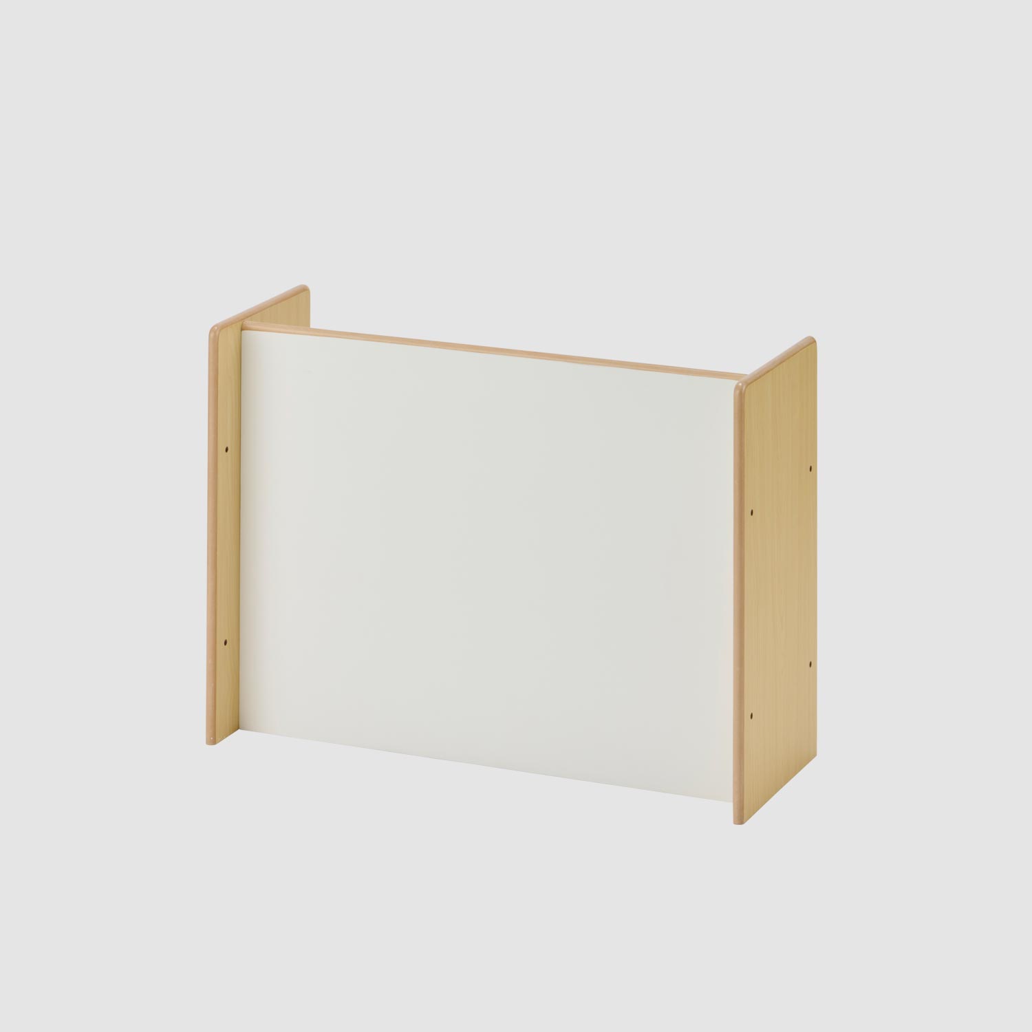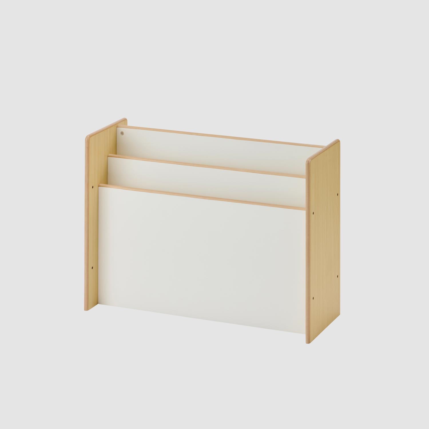 整理棚や絵本棚をぴったり連結できる乳児向けの収納棚シリーズです。棚の表裏の向きを問わず連結できるので、保育室の使い方や区切りに合わせて組み合わせを選べます。カラーは2色展開。家具をシリーズで統一すると空間にまとまりが出ます。絵本棚は子どもがのぼりにくい高さになっています。