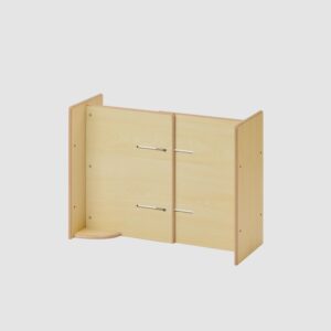 全てのユニットを高さ65㎝に揃えてあるため、パーティションとなる絵本棚や整理棚を隙間なく連結することができます。連結する際はボルトナットを使います。