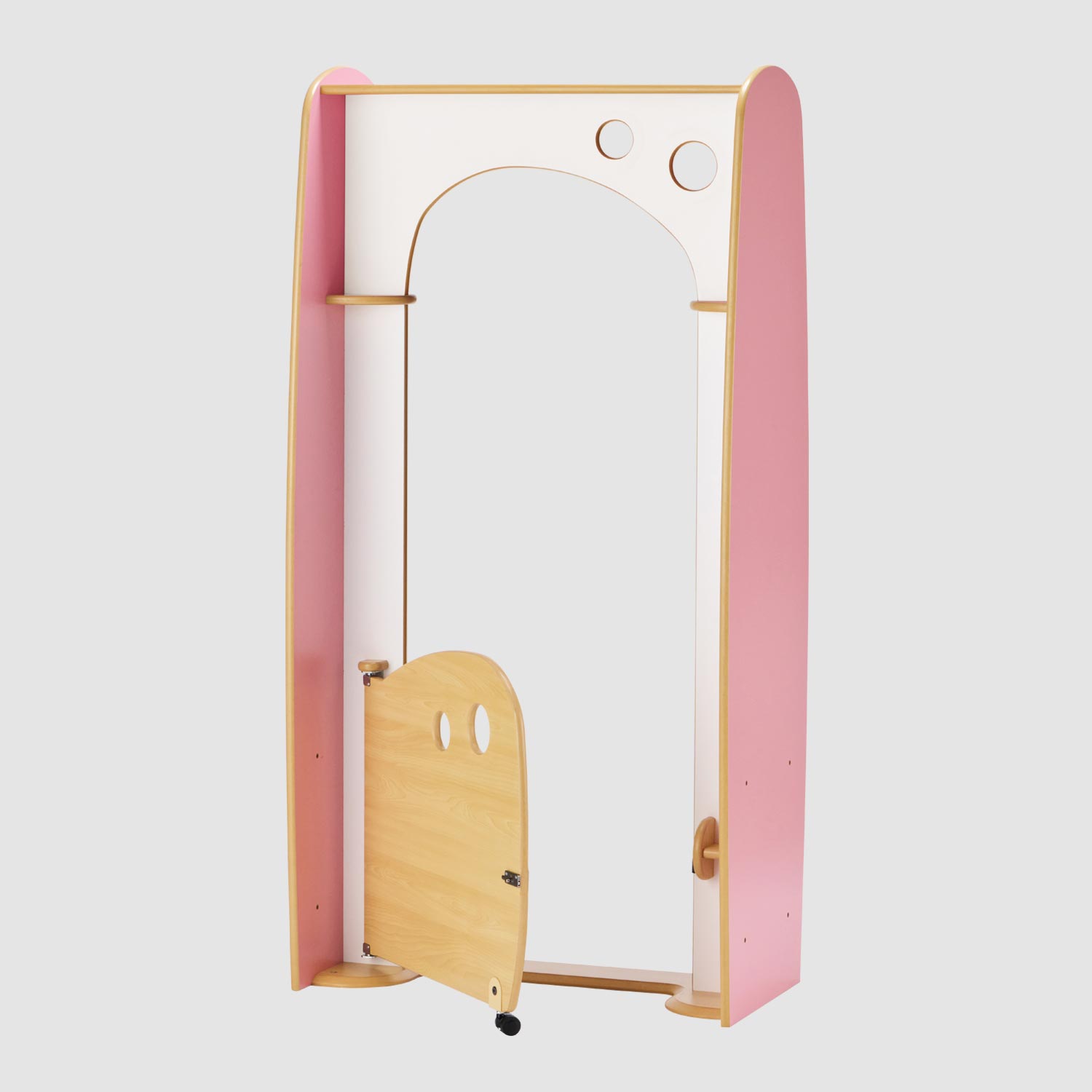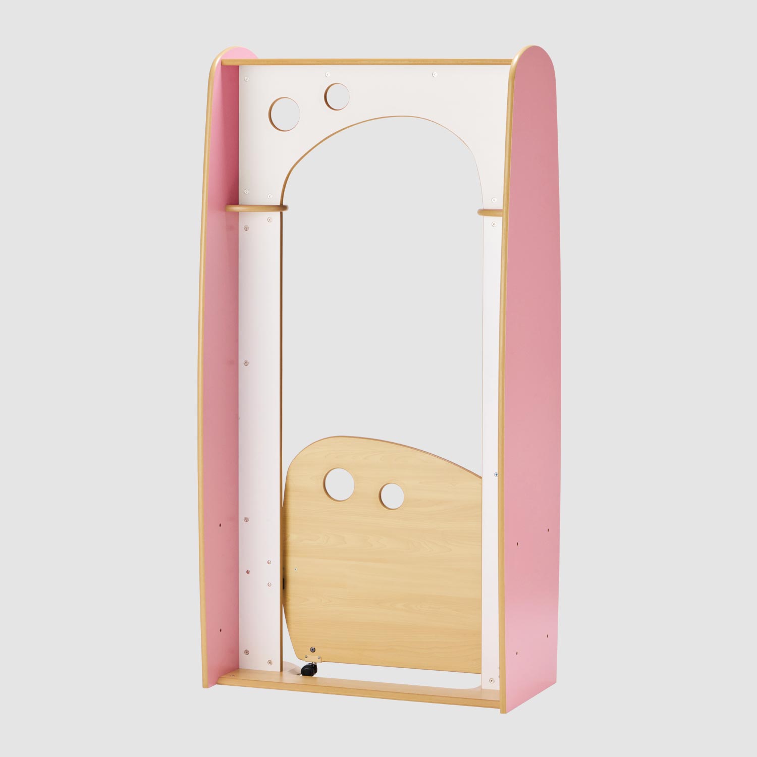 柔らかい曲線でつくられた形が特徴の家具です。 優しいピンクとシンプルな木目の色合いが 穏やかで温かい雰囲気をつくります。