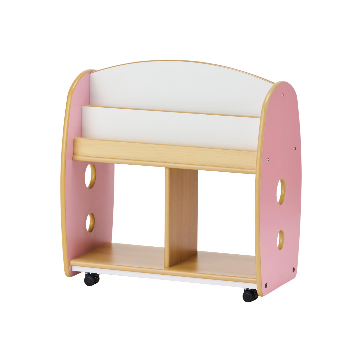 柔らかい曲線でつくられた形が特徴の家具です。 優しいピンクとシンプルな木目の色合いが 穏やかで温かい雰囲気をつくります。