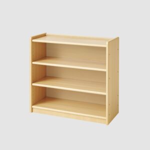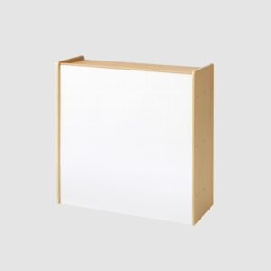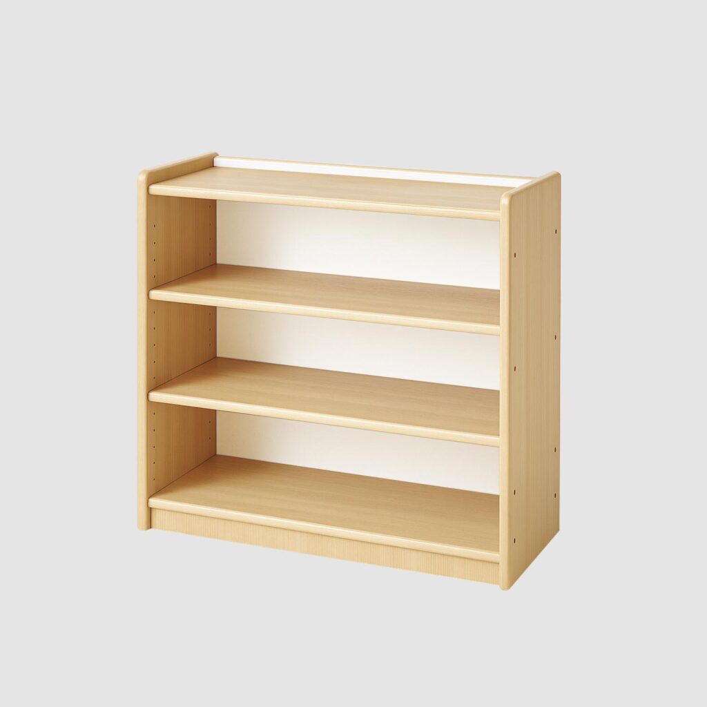 整理棚や絵本棚をぴったり連結できる収納棚シリーズに高さ 90cmタイプが登場しました。棚の表裏の向きを問わず連結できるので、保育室の使い方や区切りに合わせて組み合わせを選べます。カラーは2色展開。家具をシリーズで統一すると空間にまとまりが出ます。子どもが収納物に手を取りやすく、片付けしやすい、オープンな収納棚です。