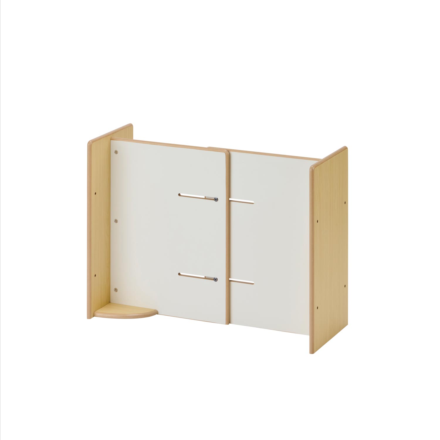 整理棚や絵本棚をぴったり連結できる収納棚シリーズに高さ90cmタイプが登場しました。場所に合わせて長さを調整できるパーティションです。 隙間をぴったり塞ぎます。