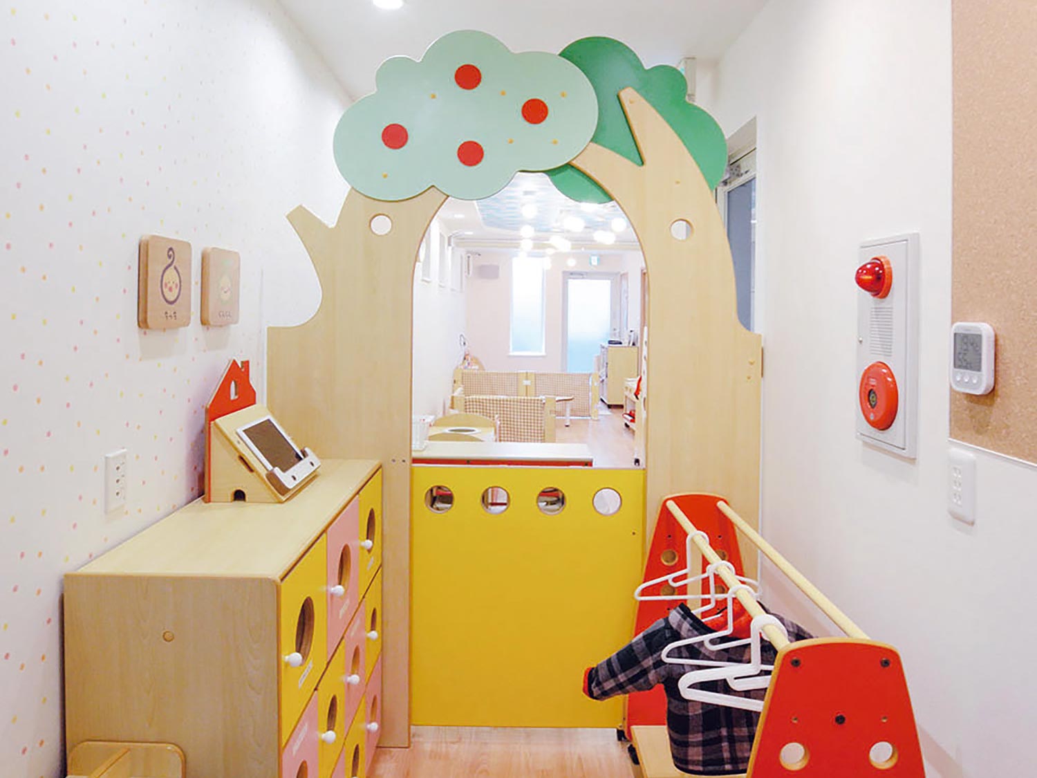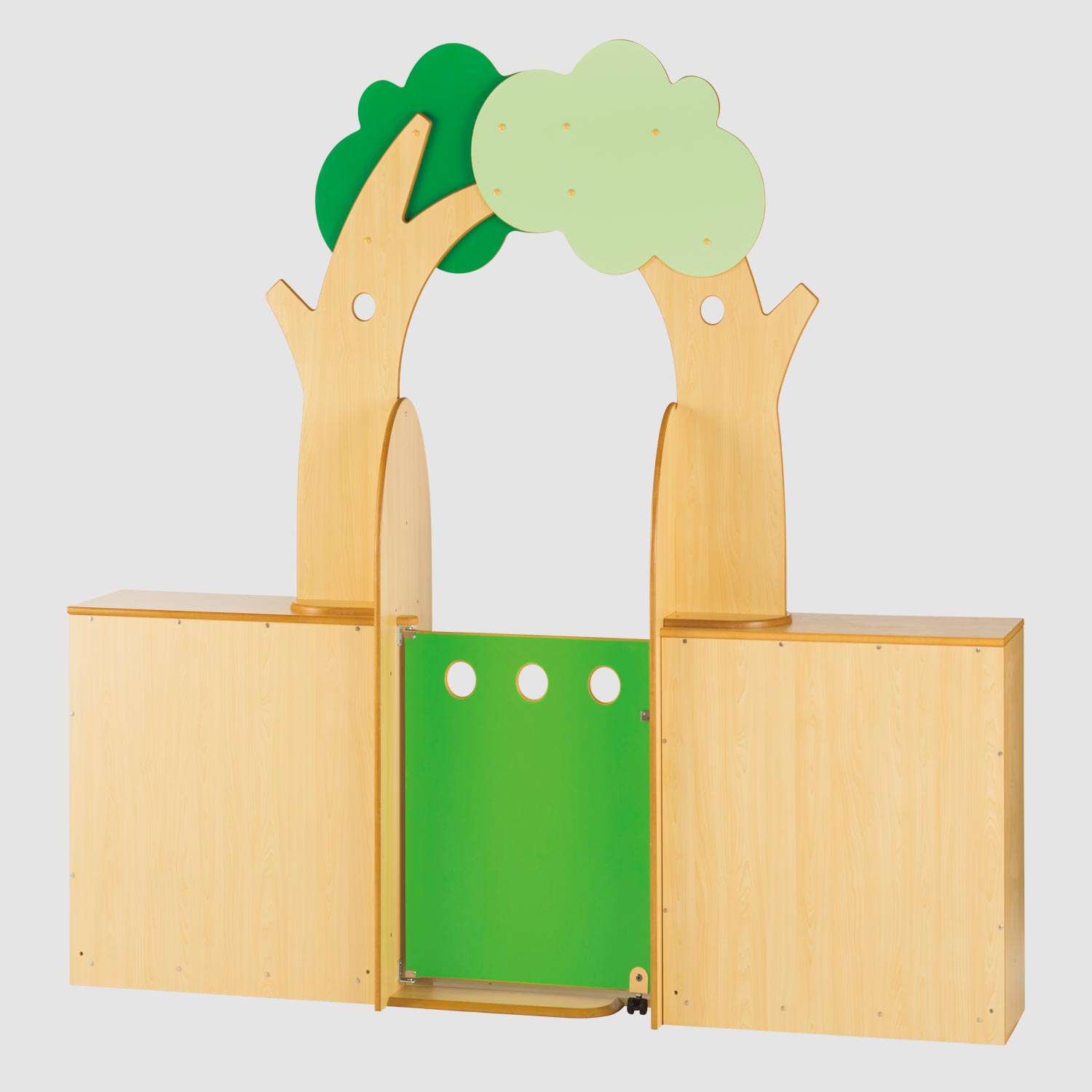 木をモチーフにしたゲートパネル。家具の側面と天板に固定して間に出入口となるドアをつくります。存在感のあるパネルで楽しい空間を演出します。
