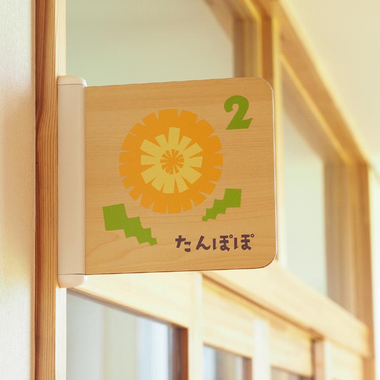 子どもたちが部屋を認識するためのサインプレート。木製プレートはあたたかい印象を与えます。