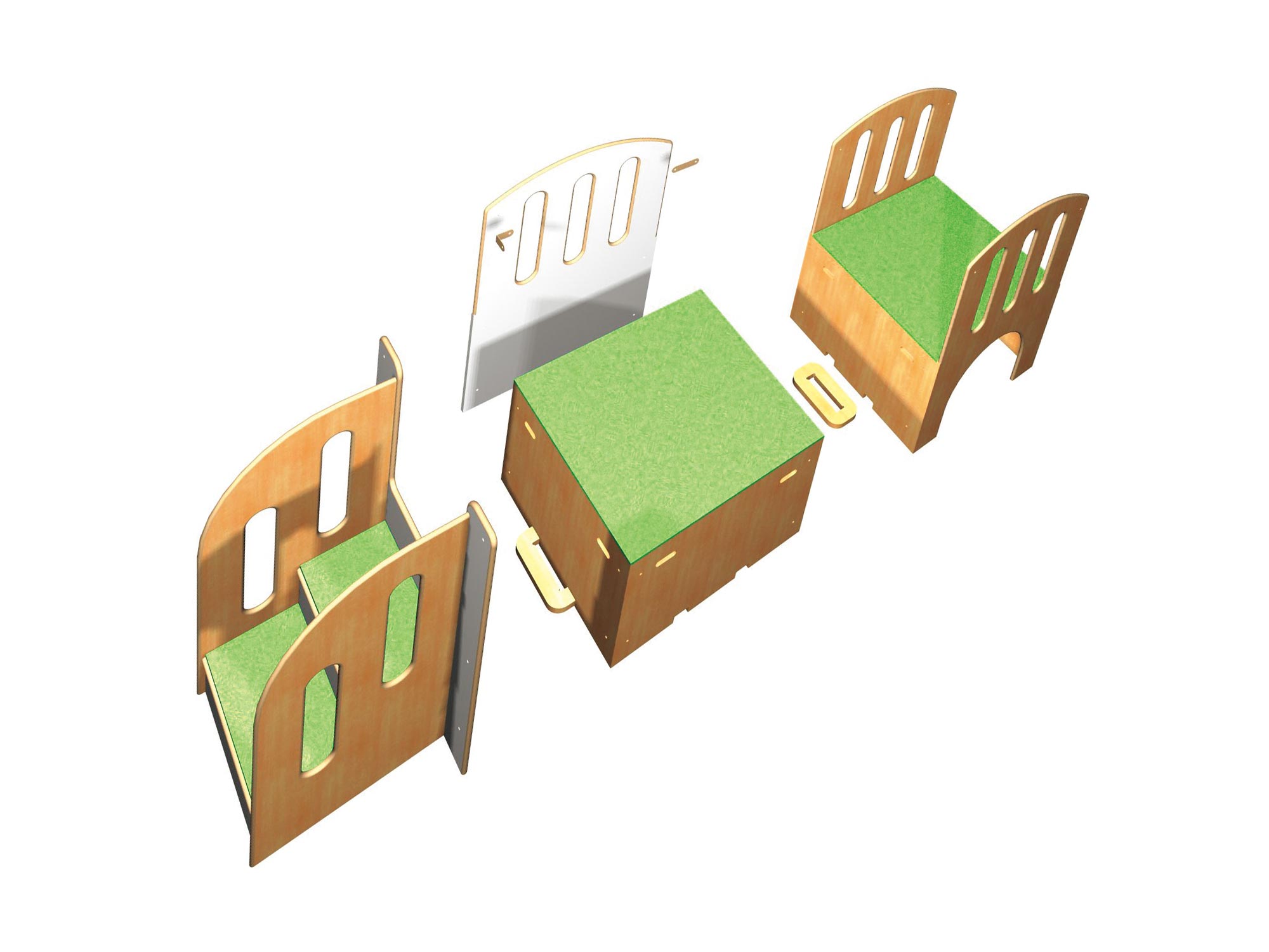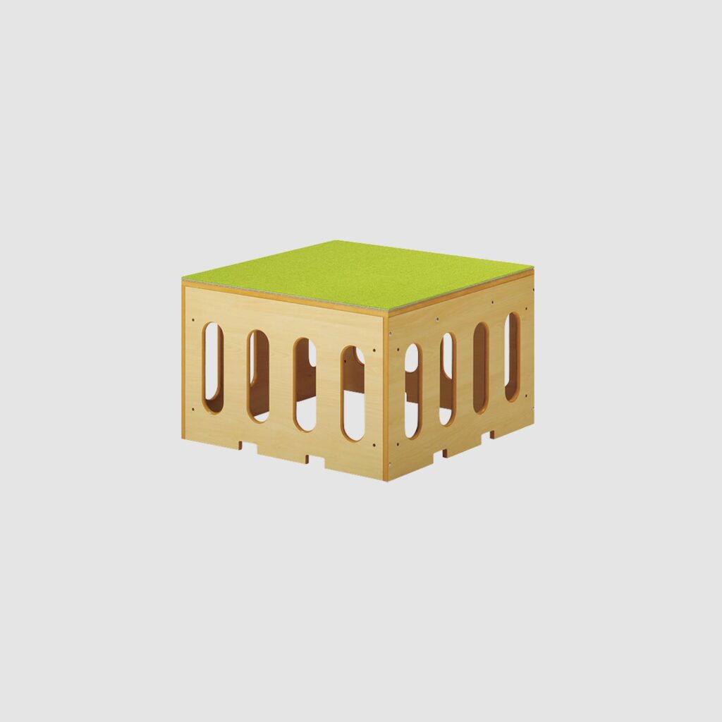 自由につなげるベビーロフトに使うステージです。すべり台や階段などのユニットを自由に組み替えられるので、成長に合わせて遊び方を変えることができます。