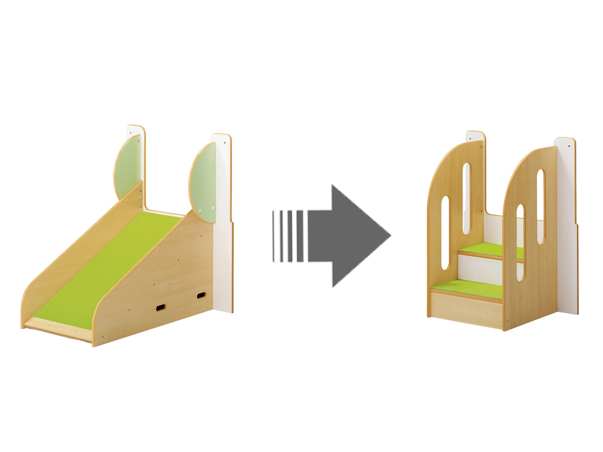 はいはいの時期はスロープ、歩けるようになったら階段というように、子どもの成長に合わせて遊具の内容を変えることができます。