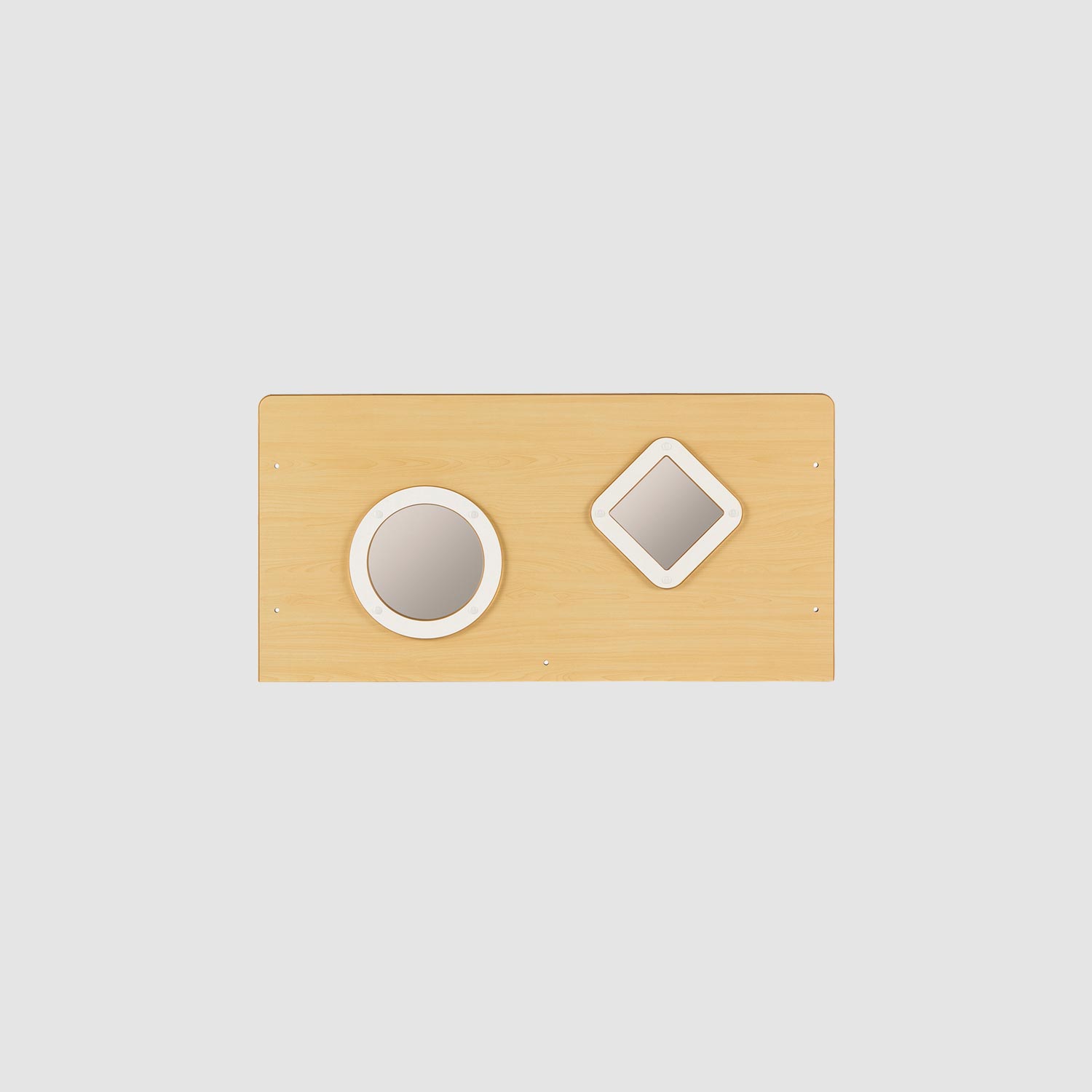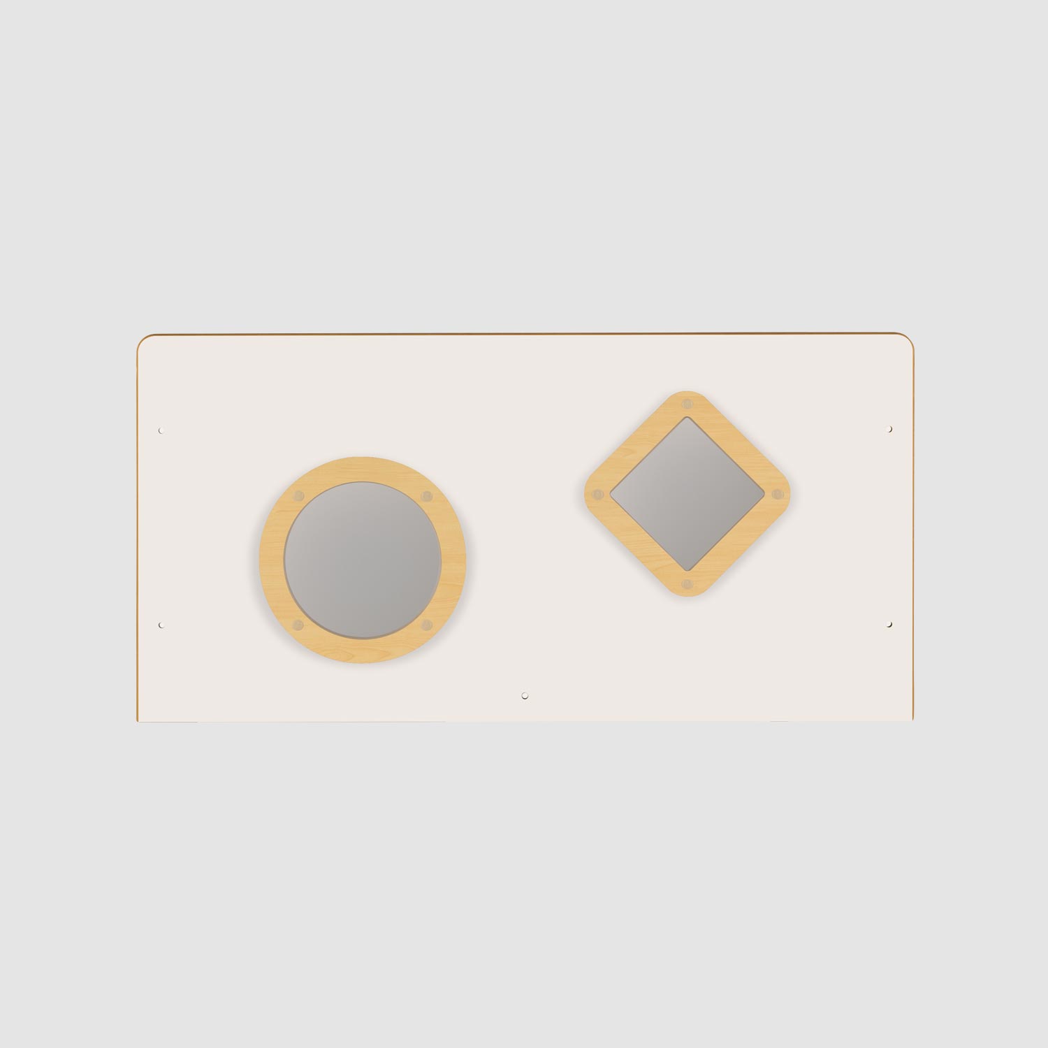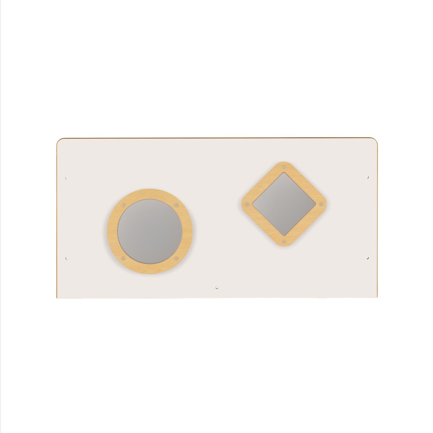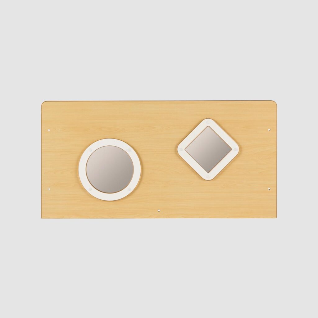 丸や四角のアクリル窓が保育室の楽しい雰囲気にぴったり。窓から向こう側が見えるので圧迫感が軽減されます。