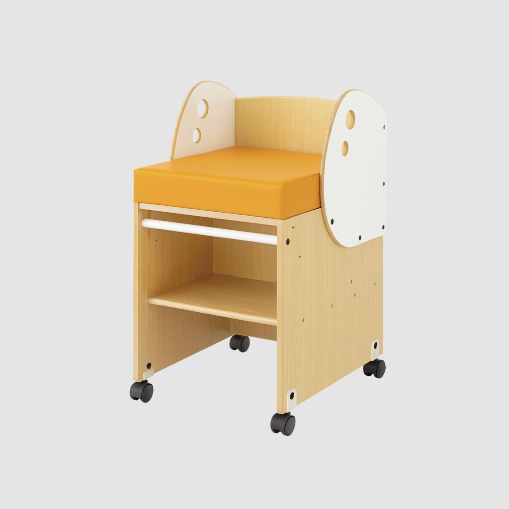 キャスター付きのおむつ交換台。一般的には重くて動かしにくいおむつ交換台ですが、ちょっとした配置変更も簡単です。子どもの成長に合わせて使わなくなった場合には倉庫に収納するなどして、トイレスペースを広く使うこともできます。マット台の下に万能プラボックス(別売り)を置けるようになっているので収納力もあります。