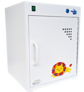 45秒で除菌ができる殺菌庫です。高速除菌ができるので、子どもが降園したあとではなく、ちょっとした時間にも使えます。