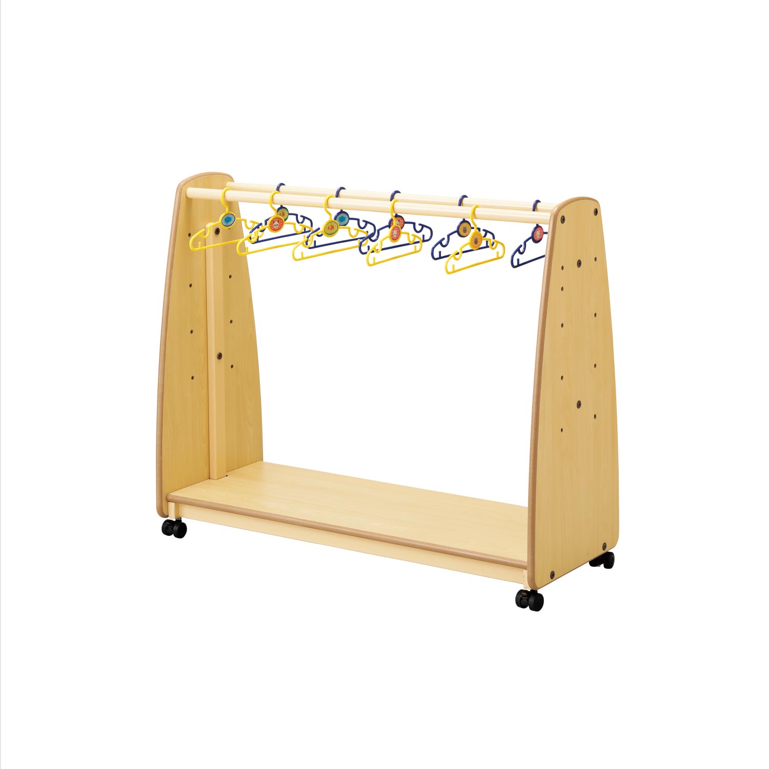 かばんや水筒を掛けて管理するワゴンです。キャスター仕様で移動が簡単。基本セットにはフックなどが付属していないので、使い方に合わせてオプションをカスタムできます。