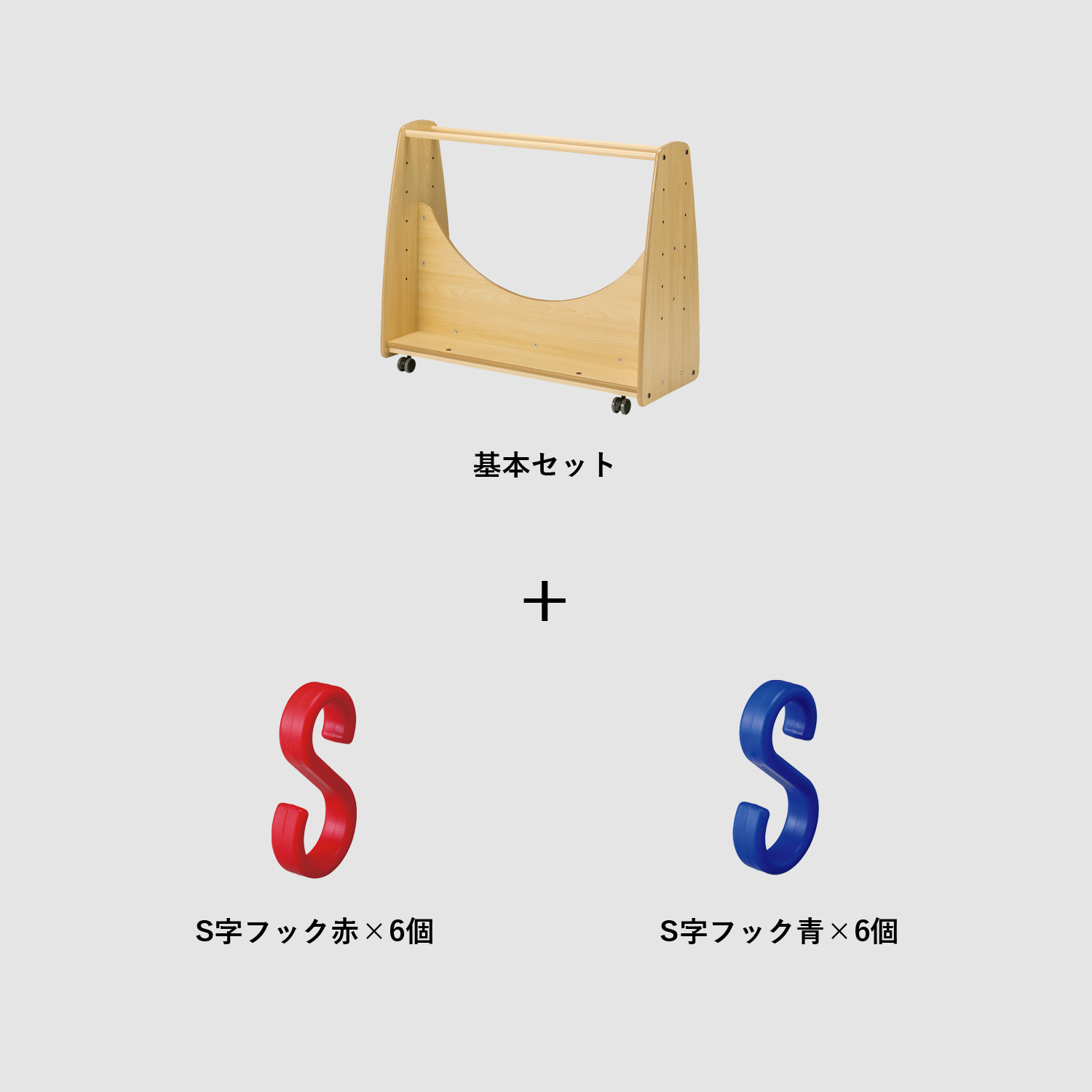 使い方が選べるワゴン[基本セット]にS字フック赤×6個、S字フック青×6個が付属したシンプルなかばん掛けセットです。