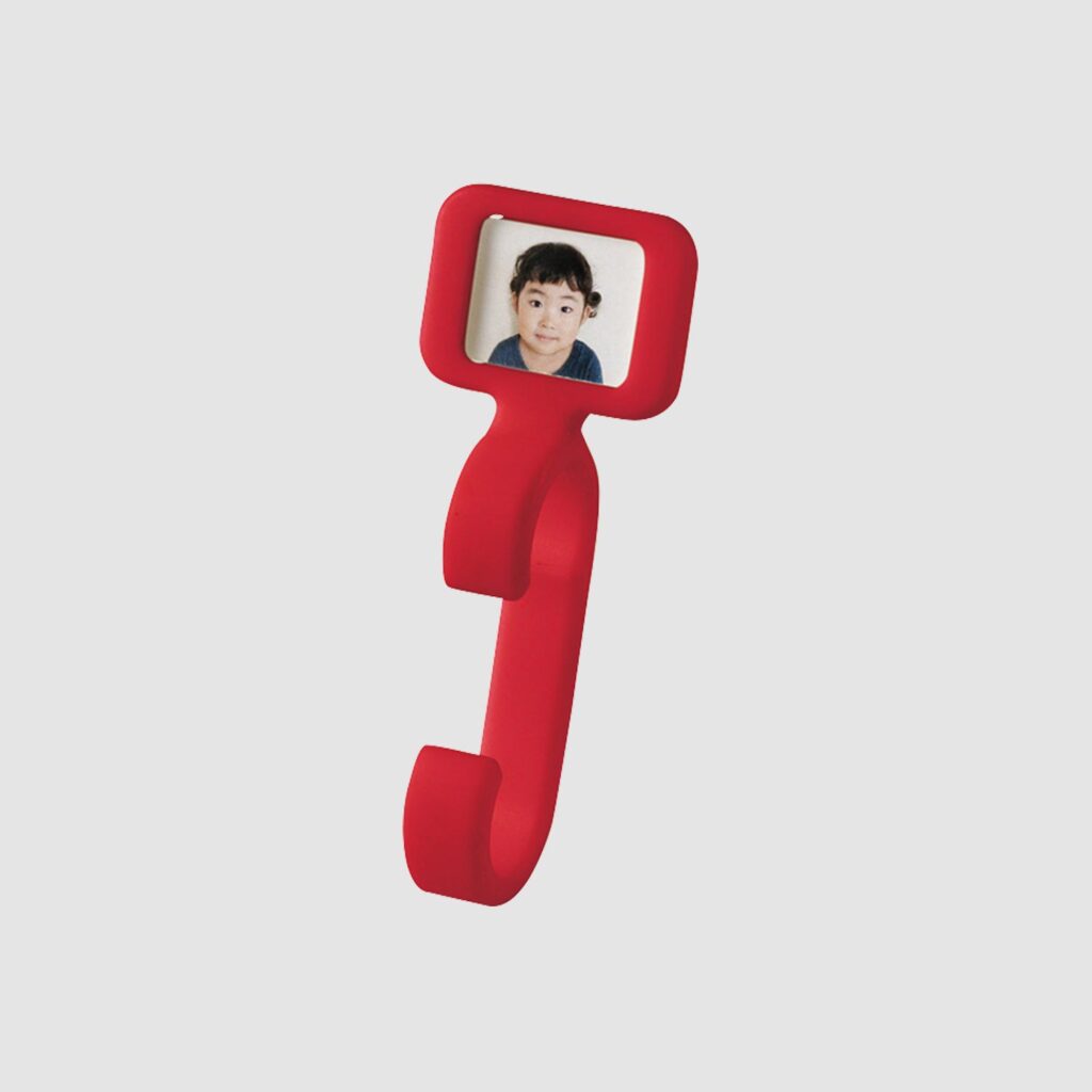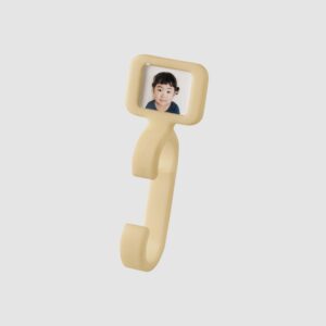 フレーム部分にイラストや顔写真を差し込んで使うフック。ペン先などの細いもので名札の後ろにある穴を押すと、差し込んだ顔写真などが取り出せるようになっているため入れ替えが簡単です。