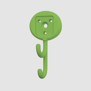 フックの先端は鋭くなく丸みがあります。子どもがぶつかっても、刺さったり、引っかかったりして怪我をする心配がありません。また、180度首振りできるので、荷物を掛けたあとにフック部分を倒すことで安全にお使いいただけます。