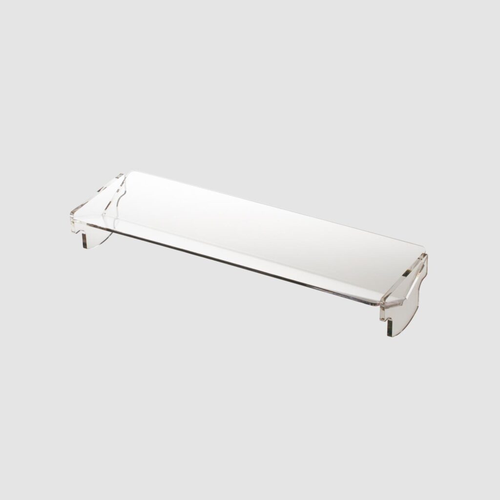 水受けを使って、コップや歯ブラシから落ちた水滴が下に落ちないようにします。水受けを1段ごとに付けることで段ごとに仕切られるので、上に掛かっているコップの水滴が落ちてきません。2本のパイプの上に乗せて引っかけるようにセットして使います。