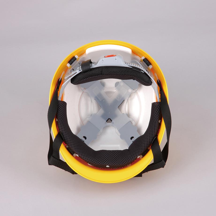 後頭部にはステッカー、内側にはクッションパッドが内蔵さてています。また、それぞれに保管に便利なメッシュ袋が付いているので、少人数の園の場合は掛けて保管することができます。