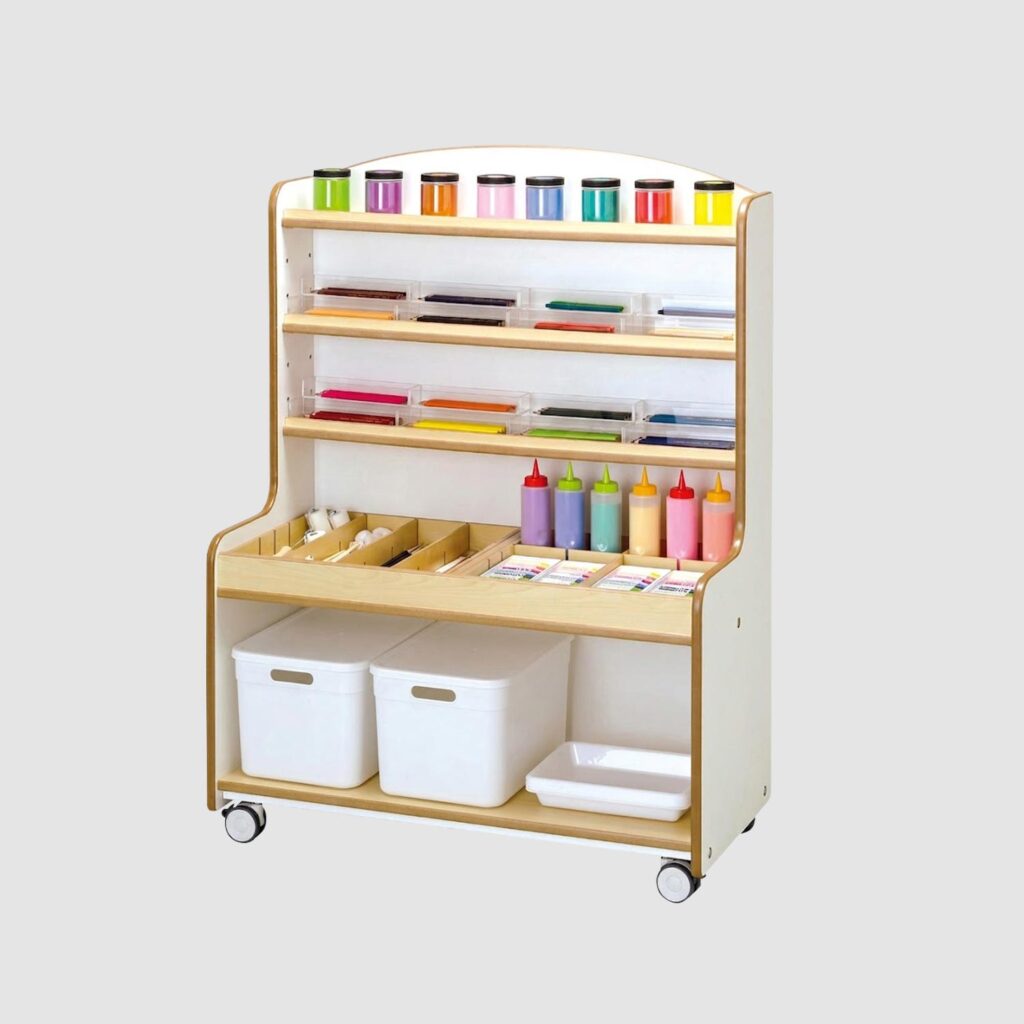 子どもがえらべるアトリエ棚[お絵かき道具棚]