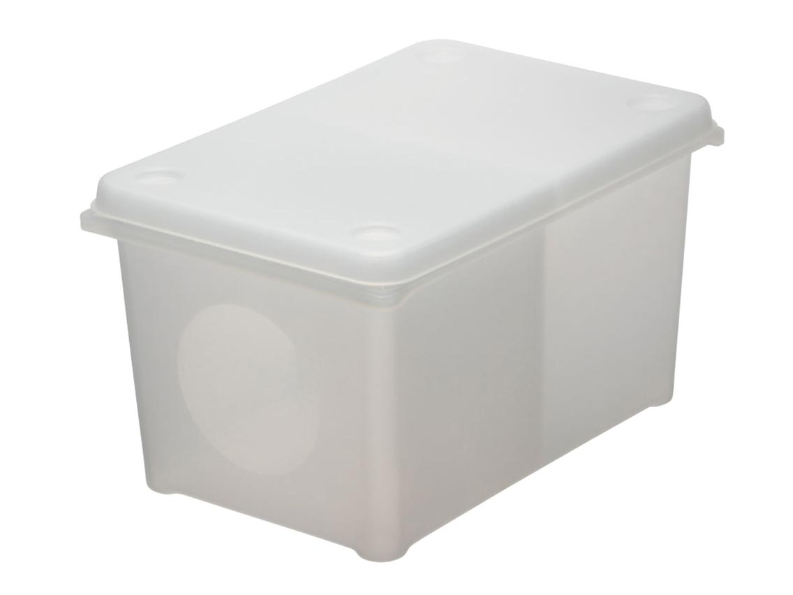 ポットには収まりにくく、万能プラボックスだと大きすぎる…そんな素材もきれに収納できます。上部が透明なので何が収納されているのか見え、子どもが取り出しやすい高さになっています。