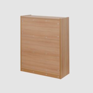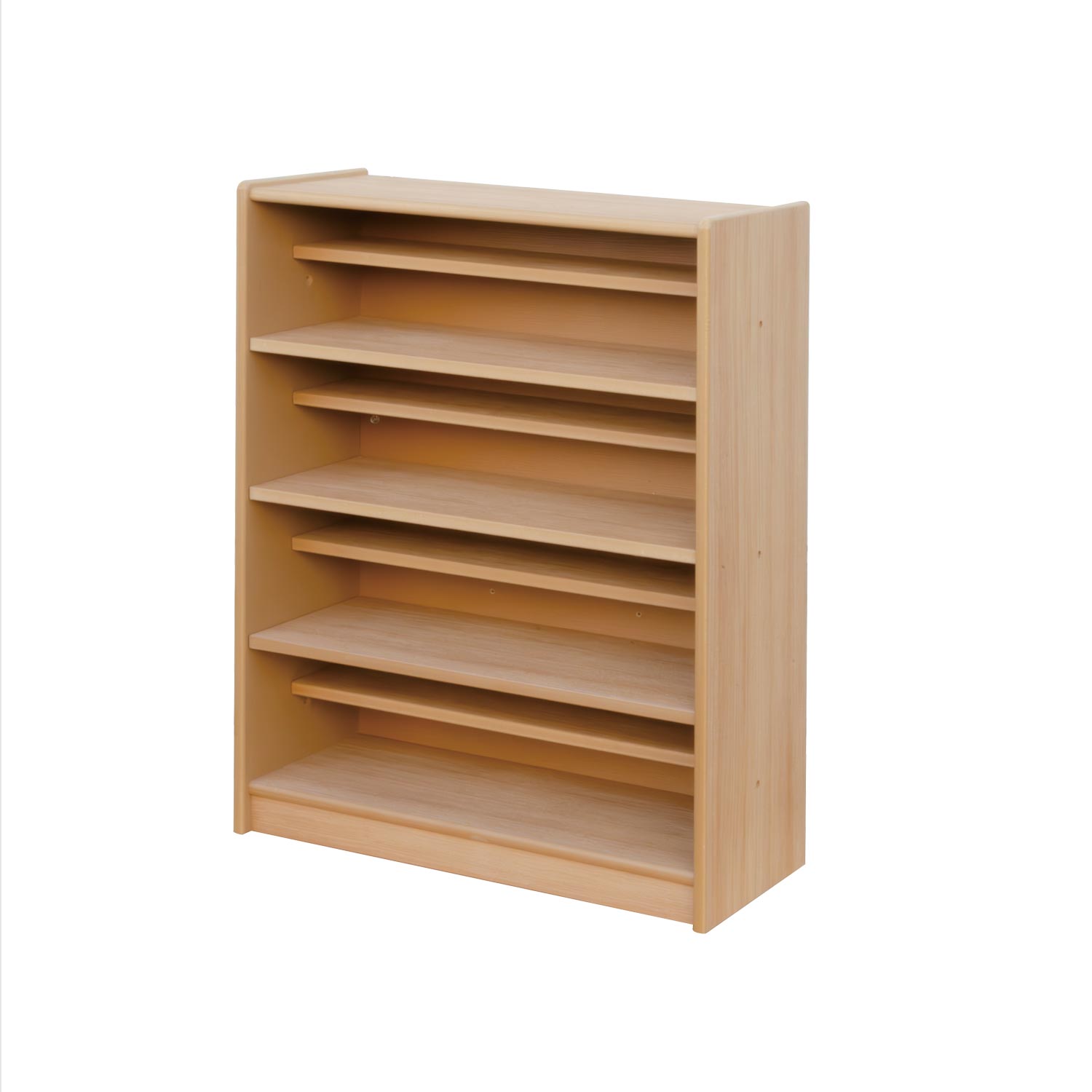 雨風に強いポリスチレン製のシューズボックスです。4段になっていて自由に靴を置くことができます。中板は外せます。シンプルで主張しすぎない色・デザインなので、園の雰囲気を変えることなくご使用いただけます。