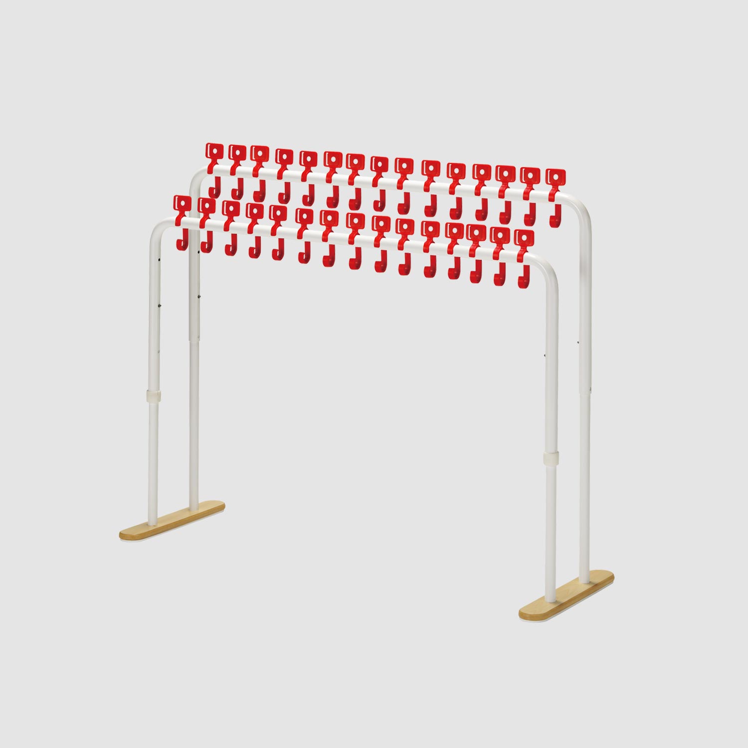 高さを60cm・70cm・80cmの3段階に変えられるフックスタンドです。フックスタンド本体は幅106cm。本体2タイプ・フック3タイプ・フックカラー3色からお選びいただけます。