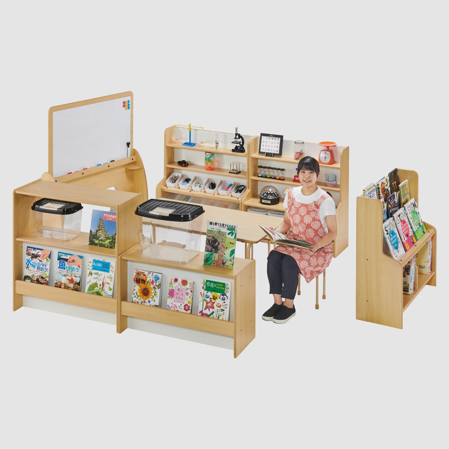 HOME 製品を探す 収納 絵本棚 科学実験コーナーシリーズ 科学実験コーナーシリーズ 興味を持ったことについて考え、試すことにより、新たな発見が生まれます。子どもの疑問や驚きを大切にし、その好奇心や探求心に寄り添うコーナーにぴったりな家具を取り揃えました。 科学実験コーナー[本棚]